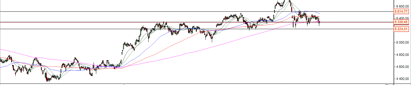 Neste momento tenta aguentar o suporte dos 5350 , anterior resistencia que foi o topo da subida durante vários meses em 2017.