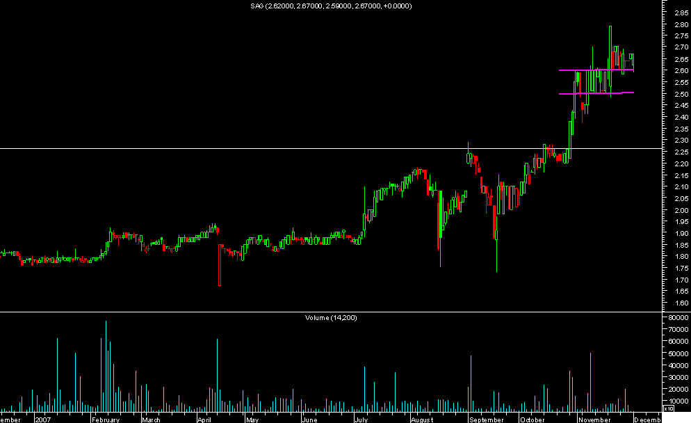 Bom, o certo é que a SAG tem um gráfico excelente. Quebrou uma resistencia, saiu dum certo marasmo em que se encontrava, e quebrou em alta uma consolidação que estava a fazer.