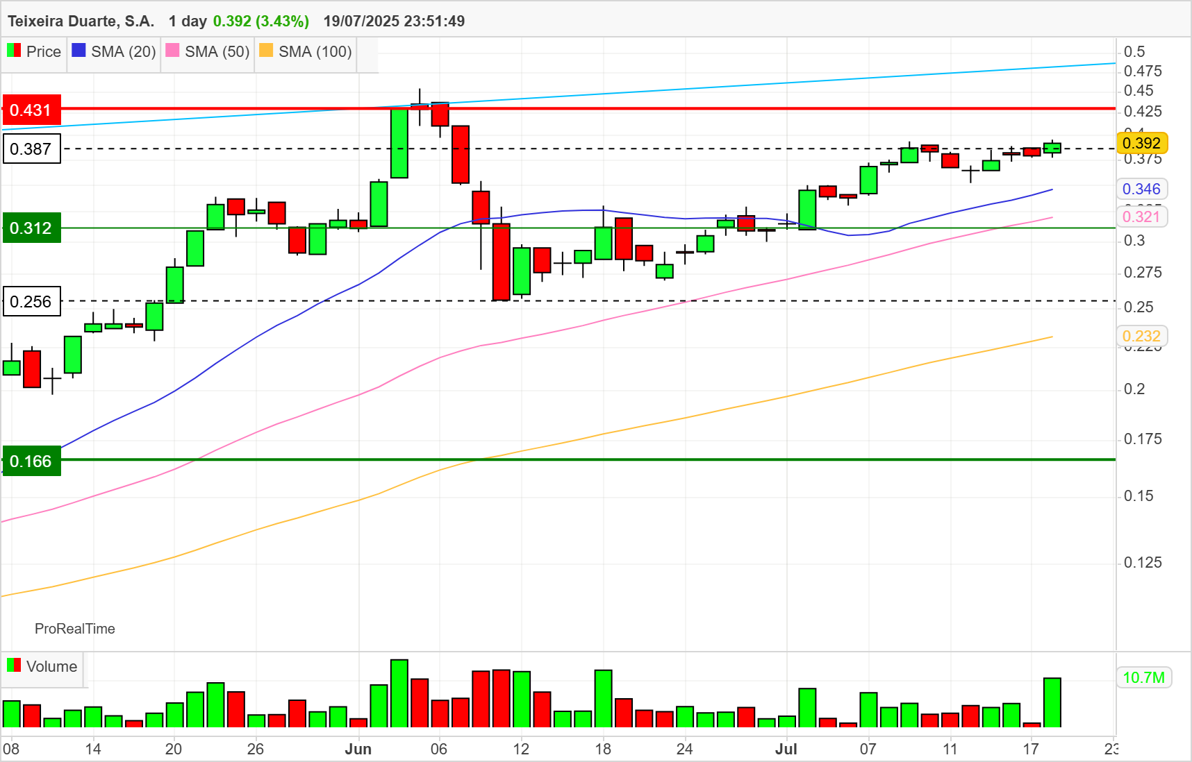 Volume e força compradora a abrir a semana( já negociou mais em 30 minutos que na ultima sessão) , objectivo até final de Agosto acima dos 0,453€ máximo relativo de anos