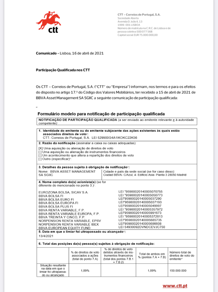 Os fundos espanhóis já andam nos CTT, boa estrategia de alocação de capital das poucas ou unica cotada em Portugal que recompra ações hoje em dia.
