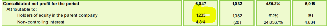 Os interesses não controlados (non controlling interest) são, regra geral, peanuts. No caso da GV são relevantes (representam cerca de 2/3).
