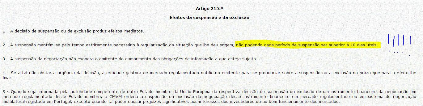 Até quando pode a CMVM manter suspenso o título?