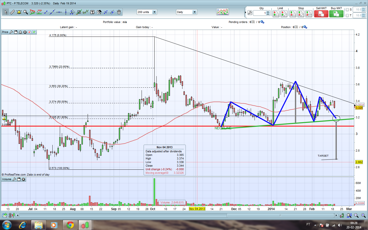 Se esse cenário se concretizar vamos ter a quebra do suporte dos 3,10 e um teste ao suporte da zona dos 2,70...![]()