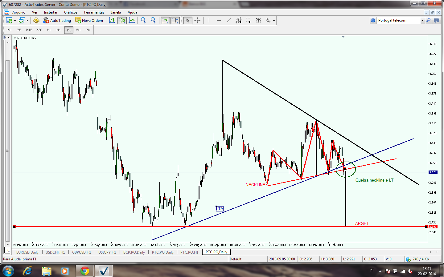 Se esse cenário se concretizar vamos ter a quebra do suporte dos 3,10 e um teste ao suporte da zona dos 2,70...