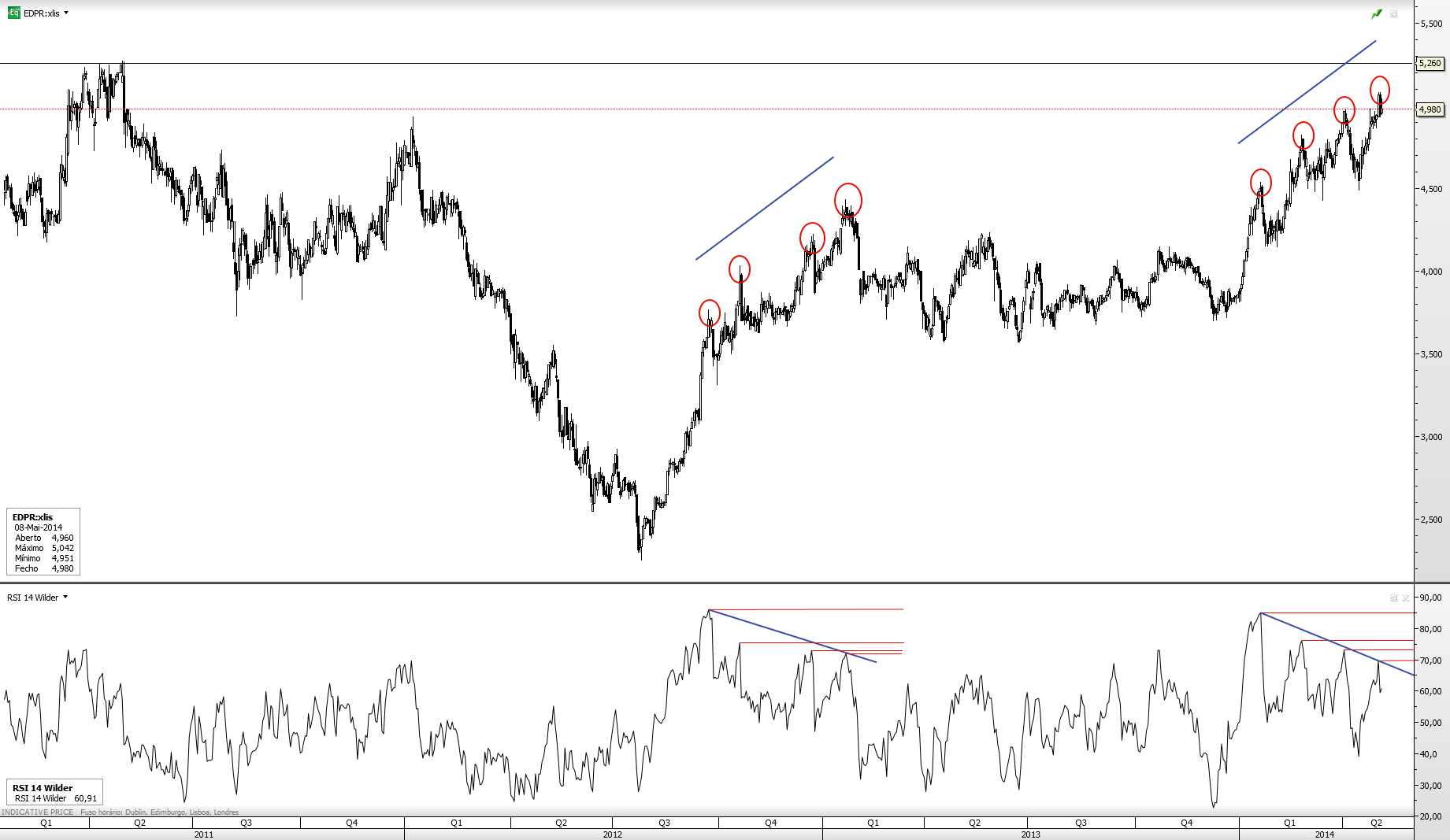 Bem, mais de dois anos depois, vendi a minha posição na EDPR ao preço de 5.043 € ganho de aproximadamente 43%, com dividendos recebidos lá pelo meio, agora passados estes dois anos posso dizer que a entrada nesta ação foi péssima, entrei contra a tendência a tentar adivinhar que o fundo seria os mínimos feitos em Outubro de 2008, claramente, devia ter esperado por uma reação/inversão nesses valores e depois ponderar então entrar, fui tão imaturo, estive a suportar perdas superiores a 30% talvez escusada-mente, mas prontos coisas da vida.