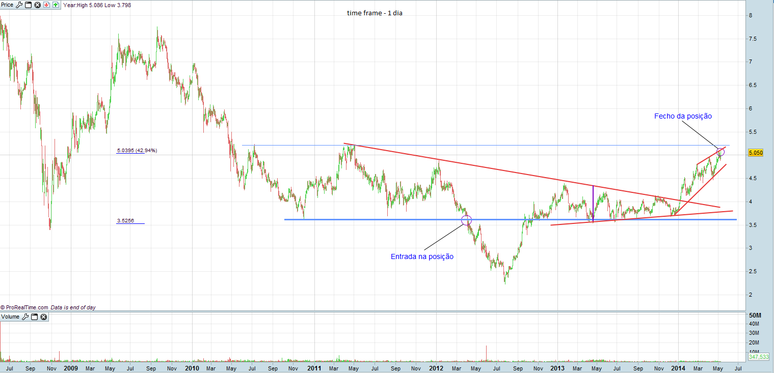 Parabéns pelo trade Blue Epsilon, eu adquiri a minha posição por volta dos 3,5, já tou a levar uma pequena ripada, mas pronto tem de se ter paciência, tenho de aceitar estas variações negativas, como terei de controlar a tentação de vender a posição com os primeiros ganhos, por agora fica guardada no ''baú'', lembrar-me-ei dela por volta dos 5 - 5.50€. :-)