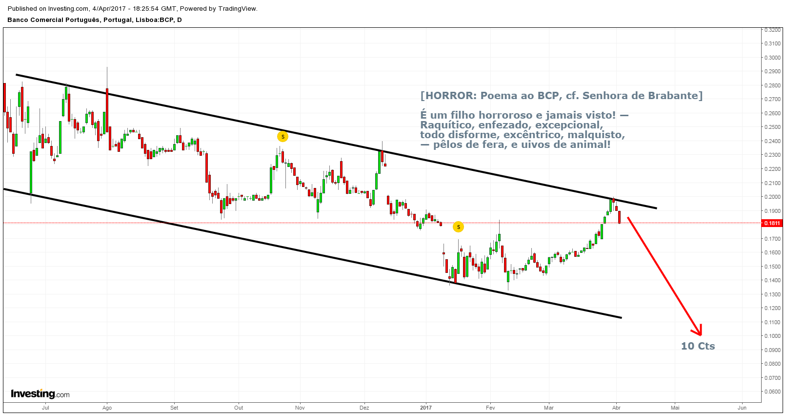 parabéns TREMAlNAIK pelo seu aviso vou aguardar o BCP descer aos 10 "ct até lá vou ficar de fora