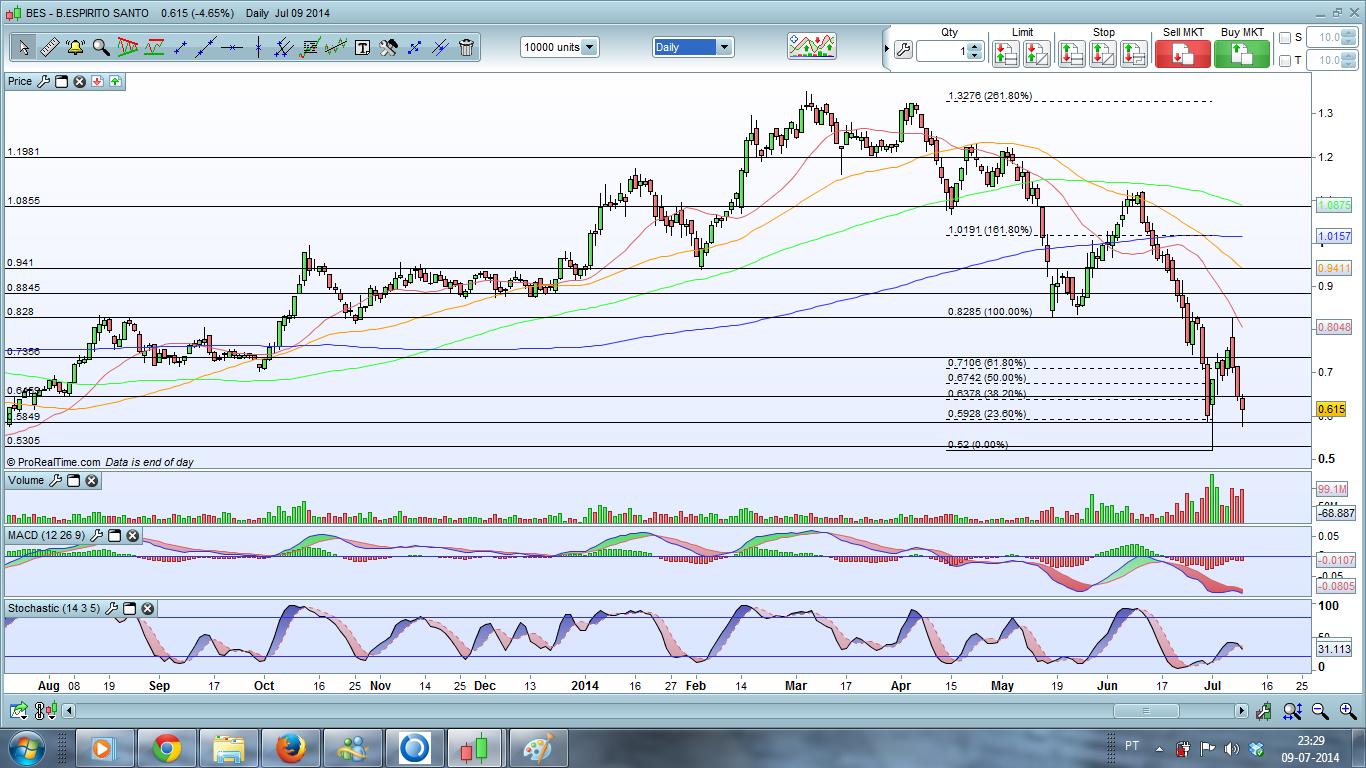 BES...ficam aqui os graficos...entre os 0,58€ e os 0,83€...ha ali muito espaço...mas hoje depois de ir a segunda vez aos 0,58€...ficou pelos 0,62€ e ja nao foi aos 0,65€ como de manha...ficou tipo a meio...