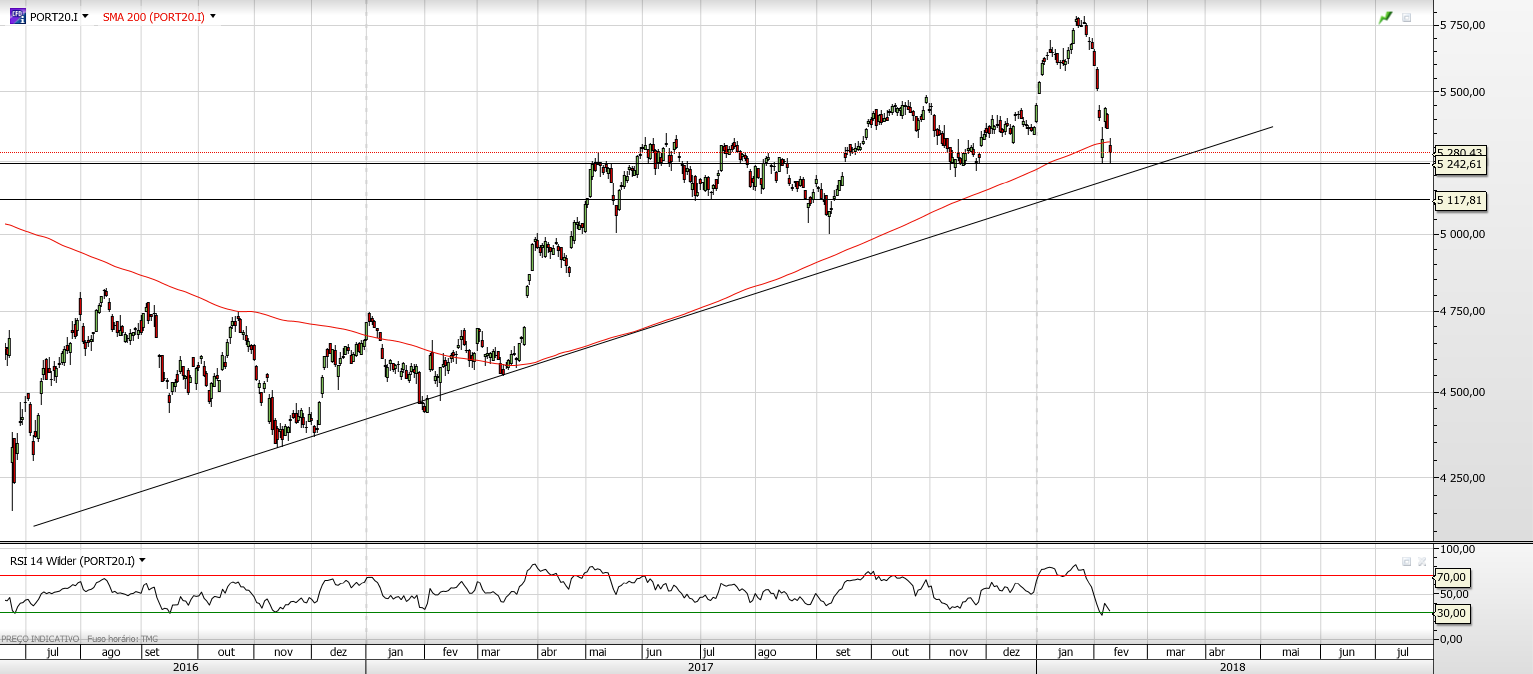 PSI para já balizado pelas 2 MM no gráfico diário e pela zona de suporte nos 5250