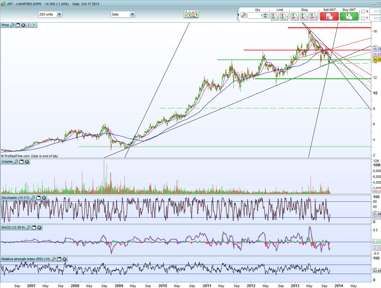 Por outro lado a JM apesar de ter valorizado nas ultimas sessões, tem ainda um preço de entrada razoável..