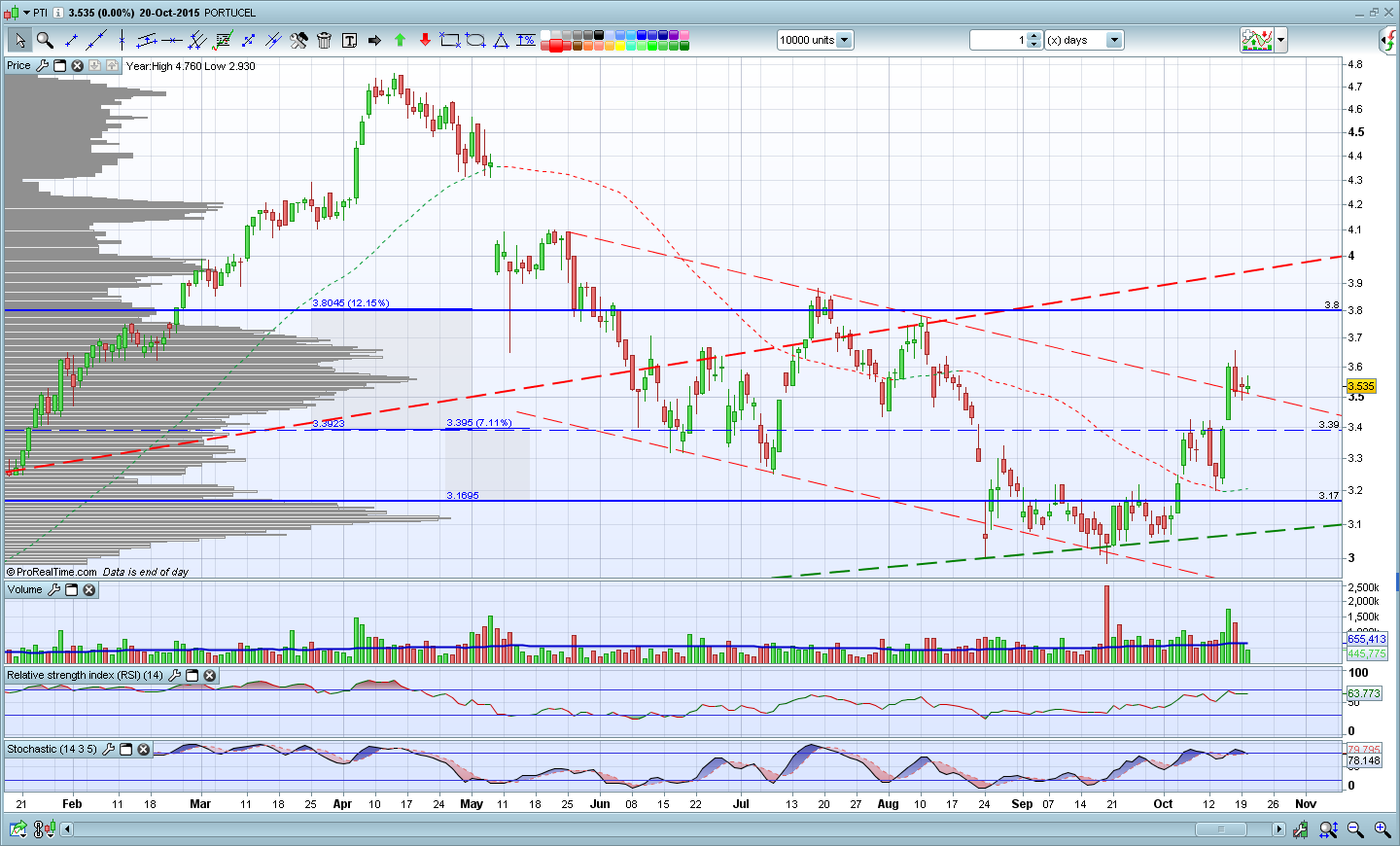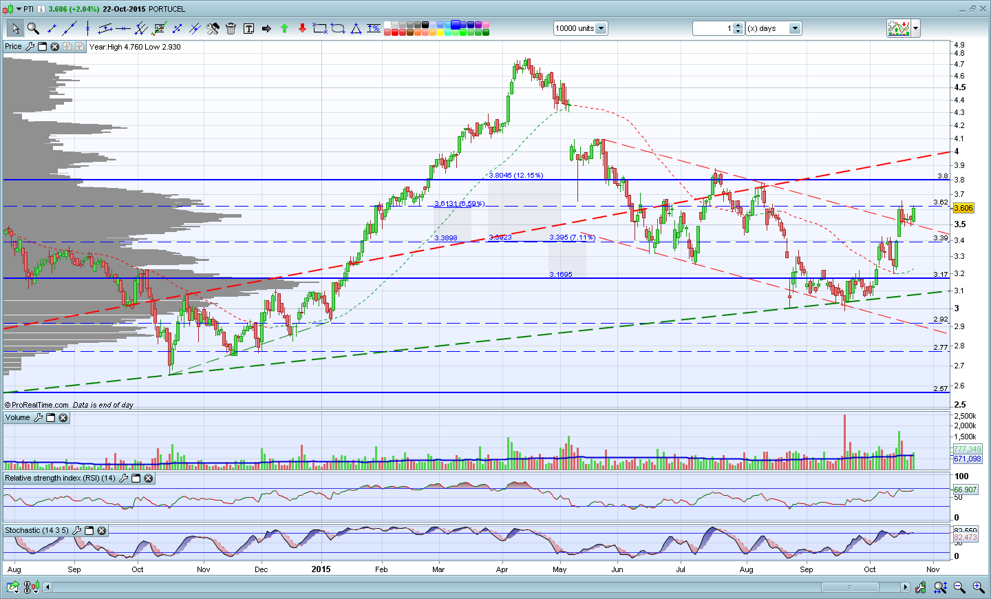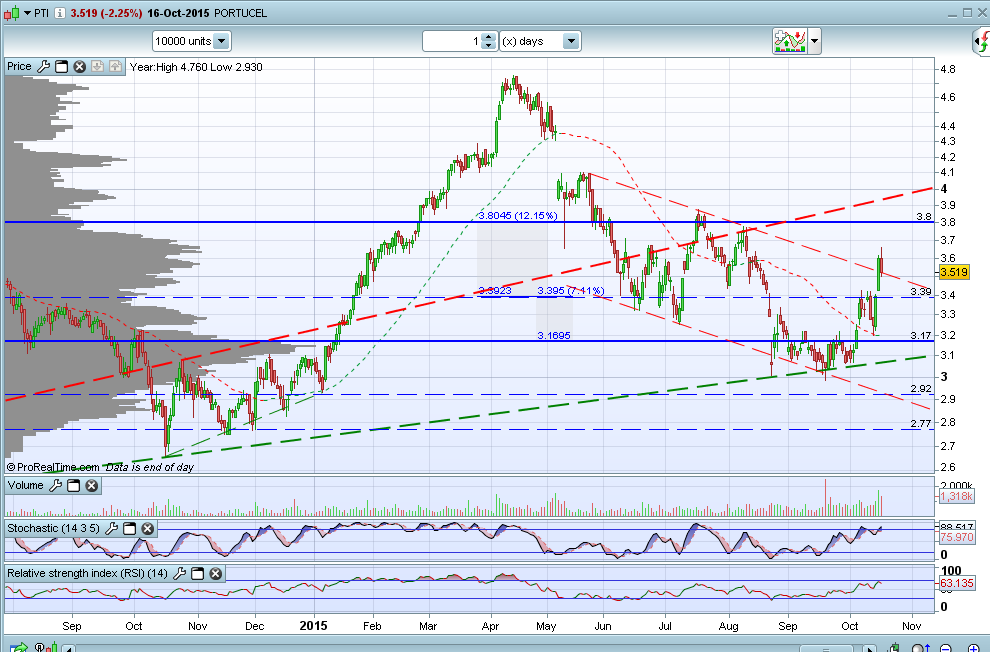 Penso que a verdadeira resistência da Portucel está nos 3,79 e se ultrapassa-la tem projeção nos 4,20.