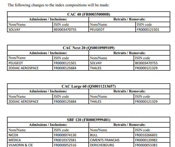 A SOLVAY irá substituir a PEUGEOT no CAC40 a partir de 24/09/2012. A Solvay, como sabem, já está presente no BEL20...