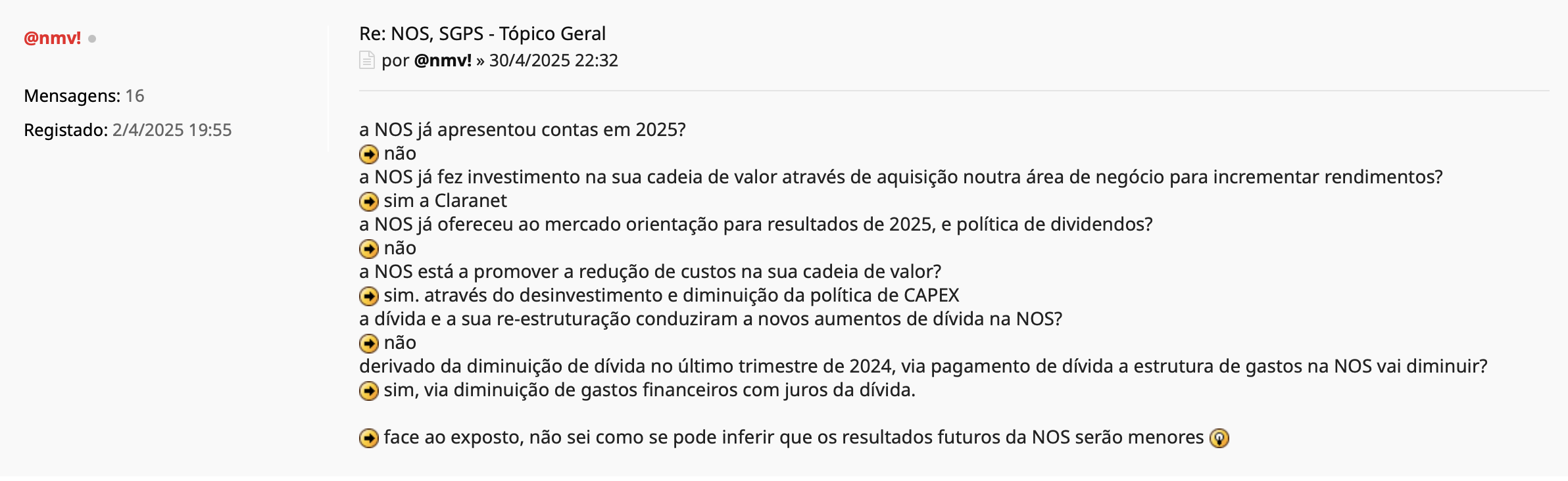 Re: NOS, SGPS - Tópico Geral "uma opinião"