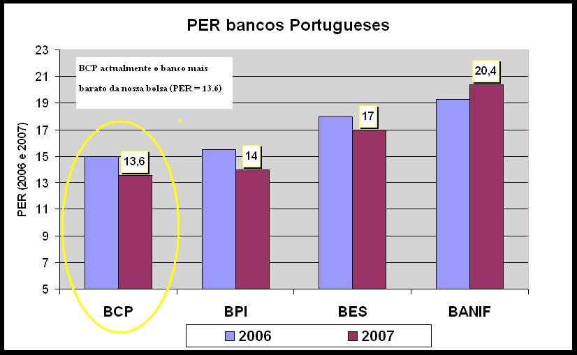 6-O bcp está barato face aos restantes bancos Nacionais e Europeus.
