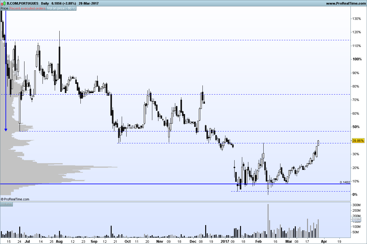 Para já não estou a ver força para chegar aos 0,19€; contudo tem-se aguentado muito bem nos 0,1880/90 sem sinais de qualquer correcção.