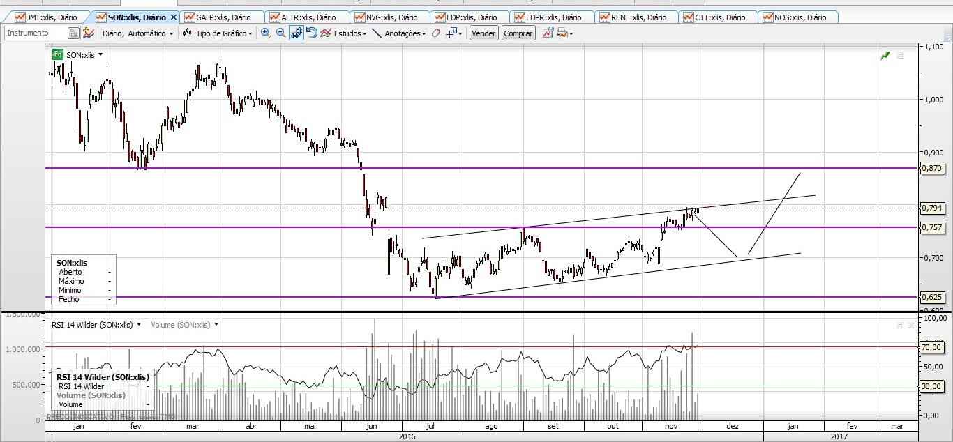 acabo de fechar a minha posição a €0.79 com 9% de mais valia (entrada a 0.725). Desde que iniciou esta subida a 03/11 já vai com 14% de valorização e os indicadores estão um pouco esticados.