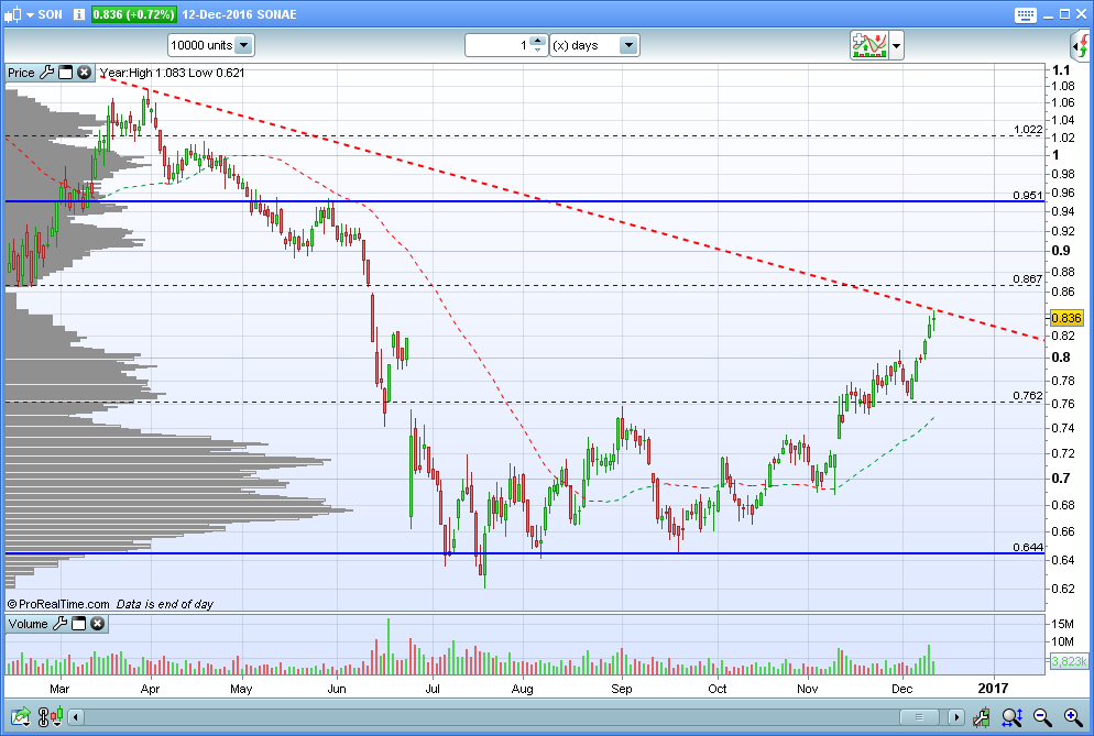 As últimas noticias estão a atrair investidores. Do ponto de vista gráfico a resistência está nos 0.87/.0,90, a resistência mais forte nos 1,05.
