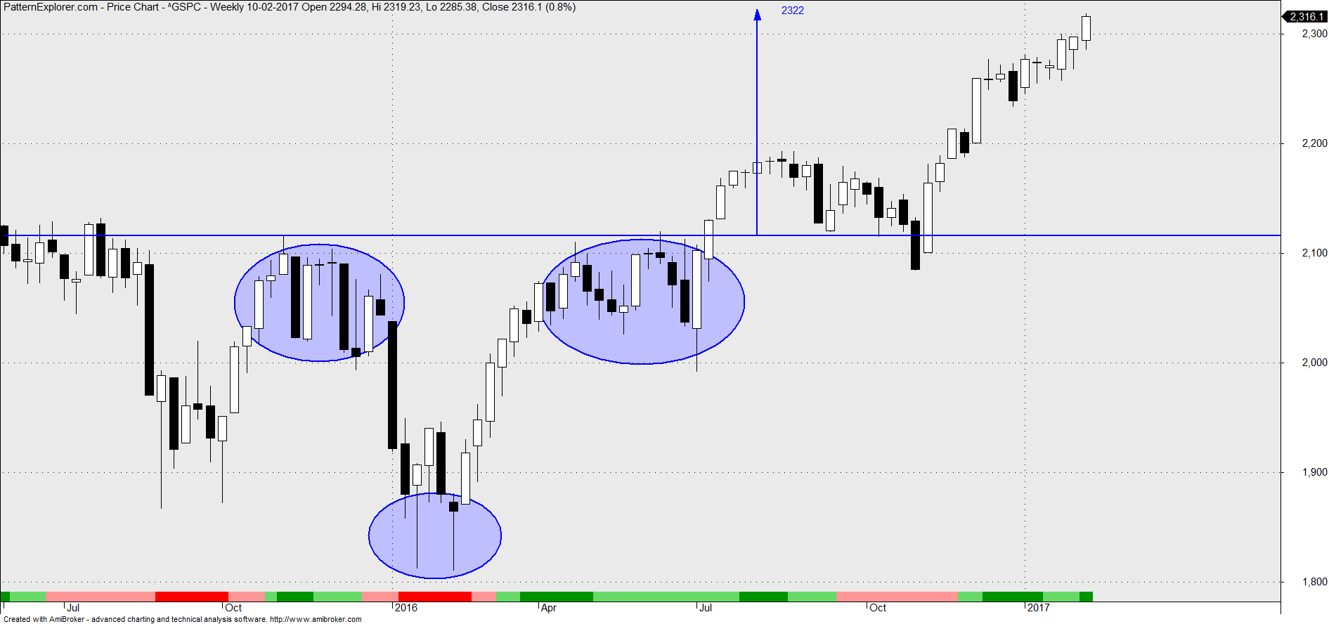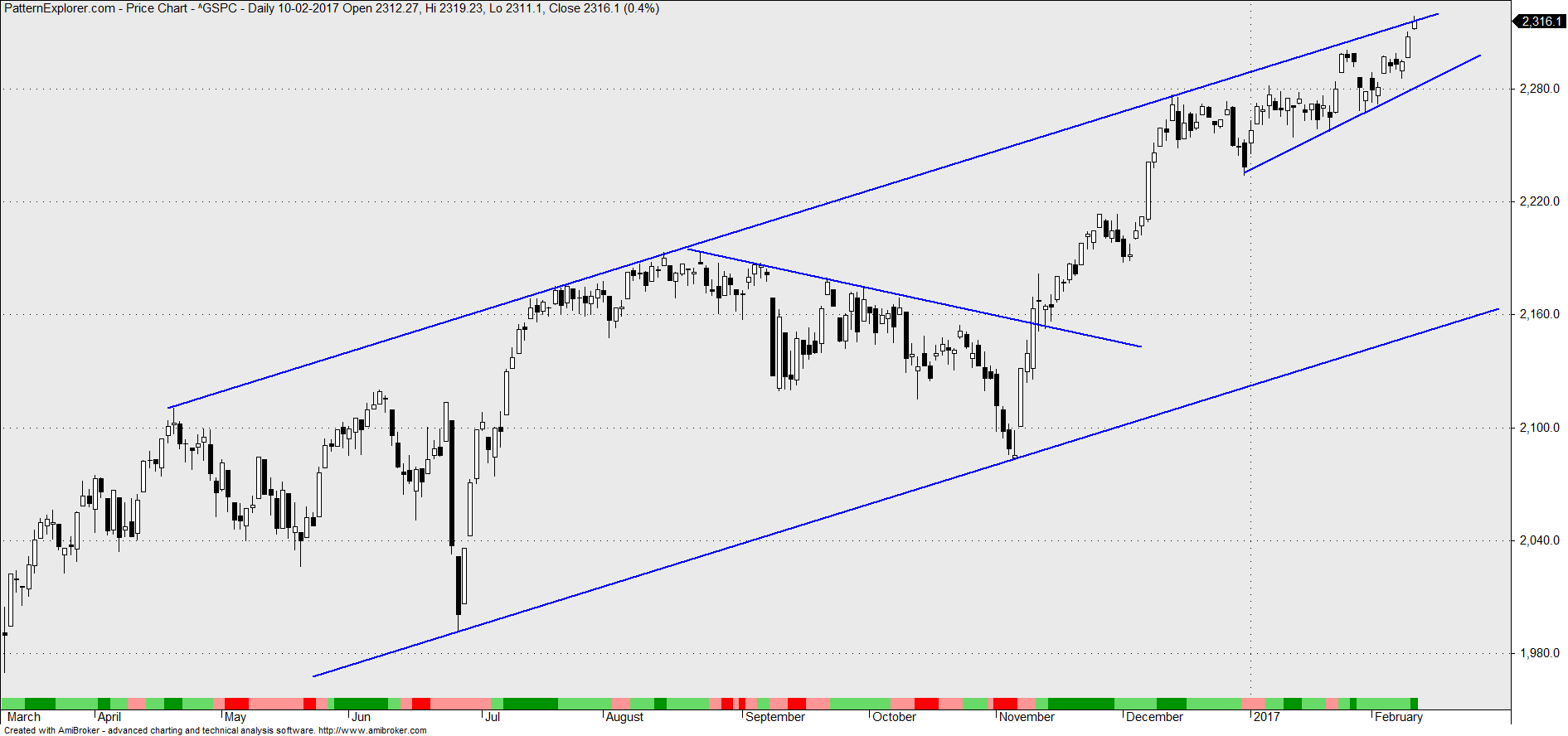 4. But the revision will allow price action to reflect the narrative more closely and therefore increase the probability of our approach. Expectations of a Trump inspired inflationary growth due to increased government expenditure and tax breaks should be borne out most in higher inflated stocks. But until when? Until perma bears (those who continue to pick a top) have given up the ghost of a 1929 or 1987 crash. But more importantly, when the effects of an inflationary expansion funded by government borrowing at least start to show. When it becomes apparent the Trump Effect is not sustainable.