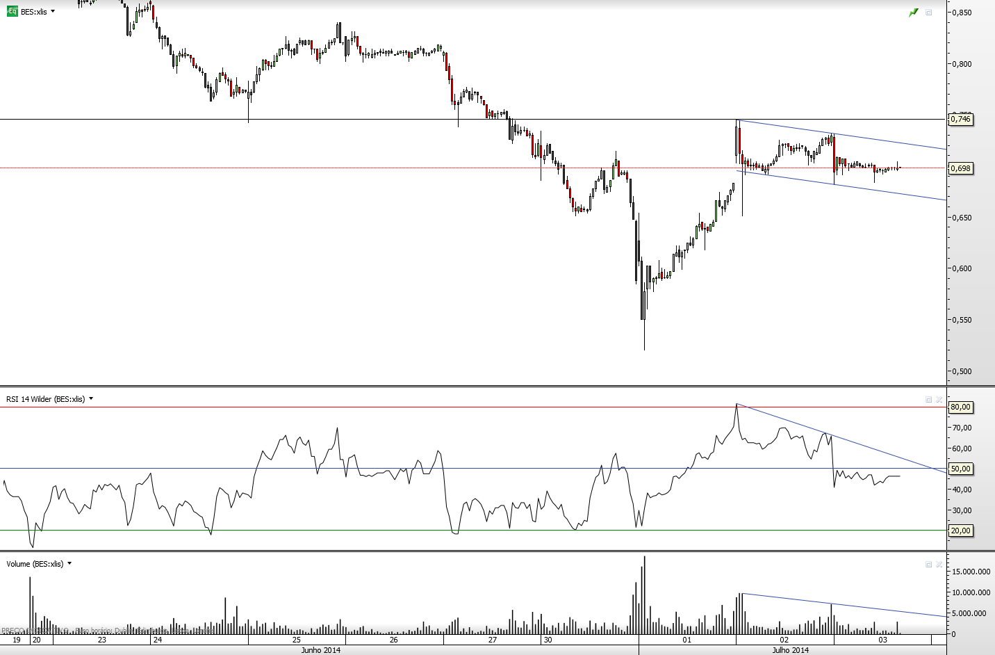 HJOR Escreveu:trend=friend Escreveu:Ninguém melhor que o HJOR falará por si, mas penso que ele quis evidenciar, entre outras coisas, o volume decrescente nas descidas. E esse "canal descendente" cheira um pouco a pano de bandeira. Logo...