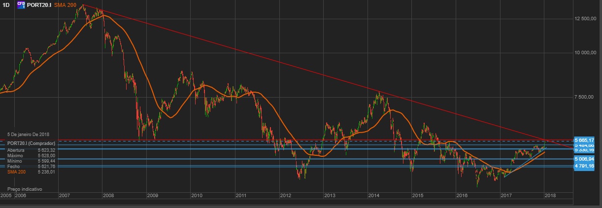 Com o excelente dia de hoje, o PSI fica agora colado à sua importante resistência.