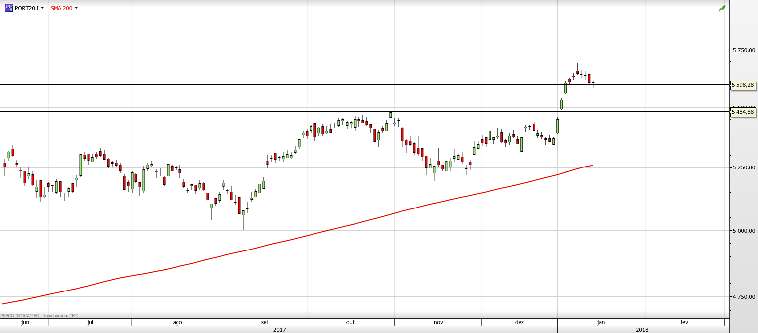 Significou que entrando em Janeiro , o efeito ano novo fez-se sentir e tivemos 3 dias de fortes subidas com 3 gaps, ultrapassando as resistências , fruto da época e da habitual alocação de fundos e expectativas subida do novo ano.