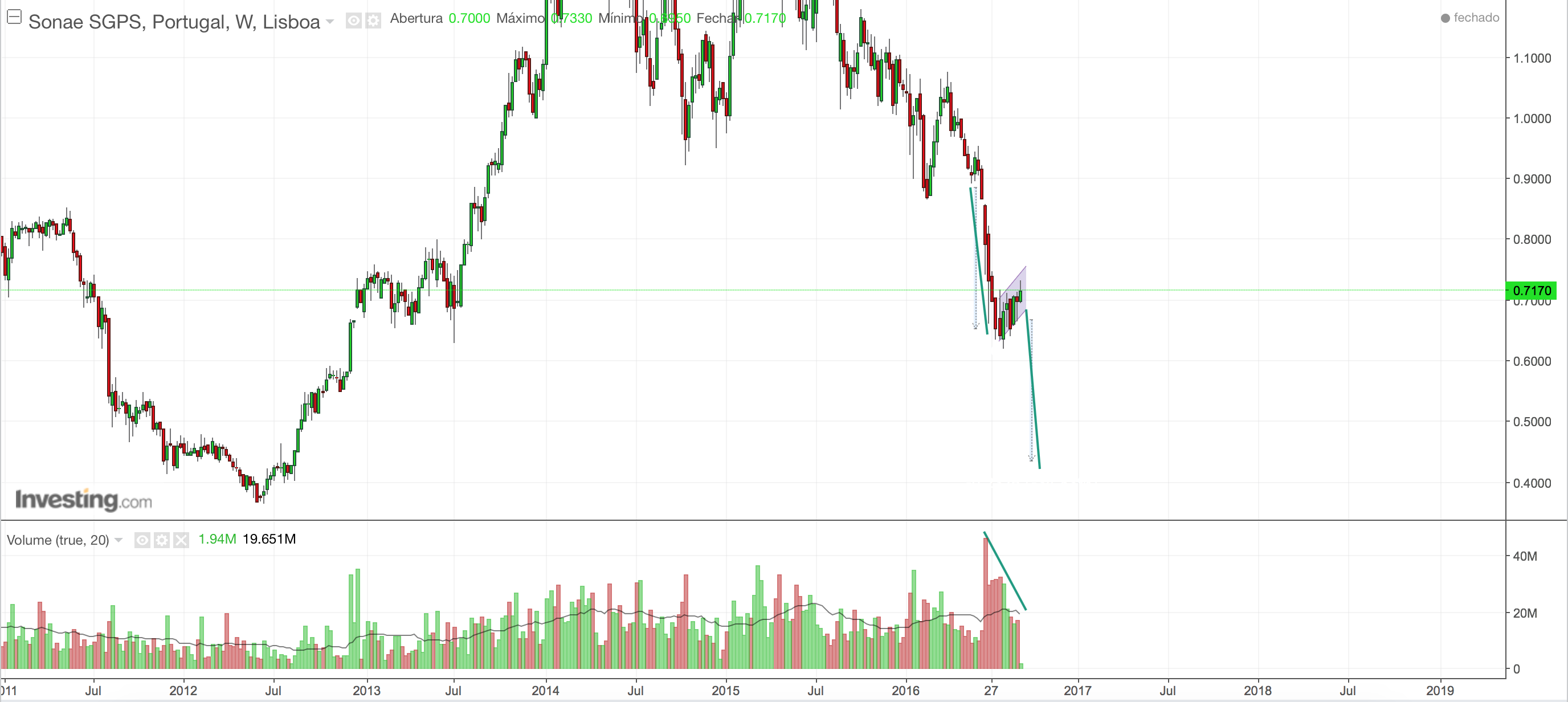 Sim a tendência de longo prazo da sonae é bearish ainda,assim como o psi,basta ver o semanal,trata-se de uma operação contra a tendência, de curto prazo.Estou nesta pelo 4h e diário.