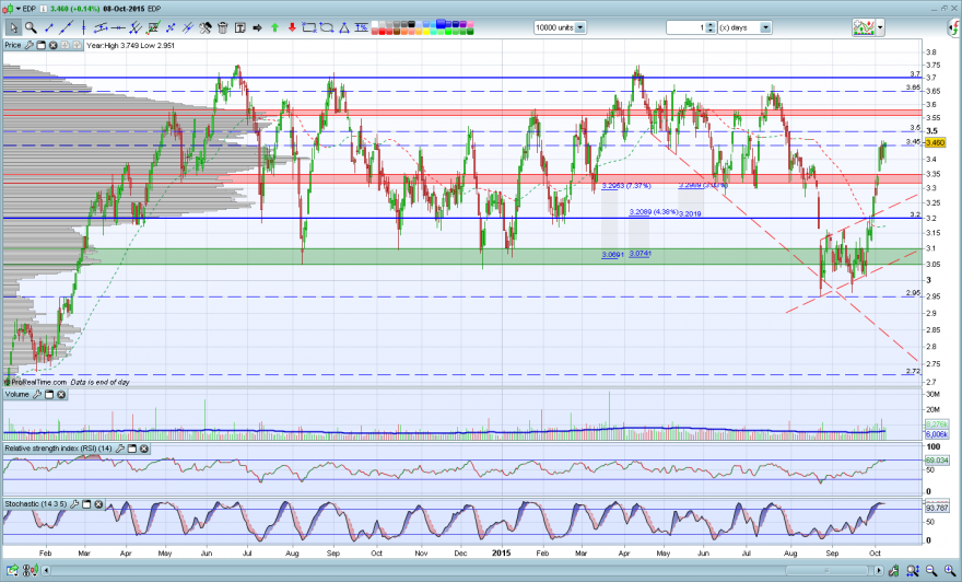 A EDP está em termos de AT com uma resistência importante só nos 3,75. Até lá com algumas consolidações deverá chegar sem muito problemas.