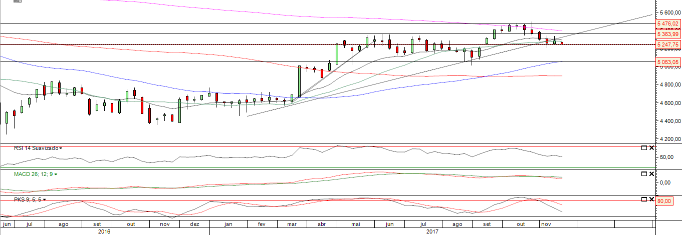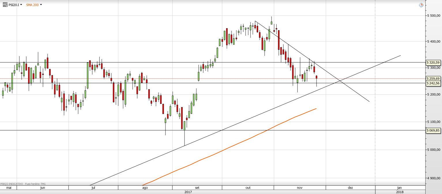 Para já mantem-se exatamente na linha da LTA com os BULL para já a segurarem o suporte na zona dos 5250.