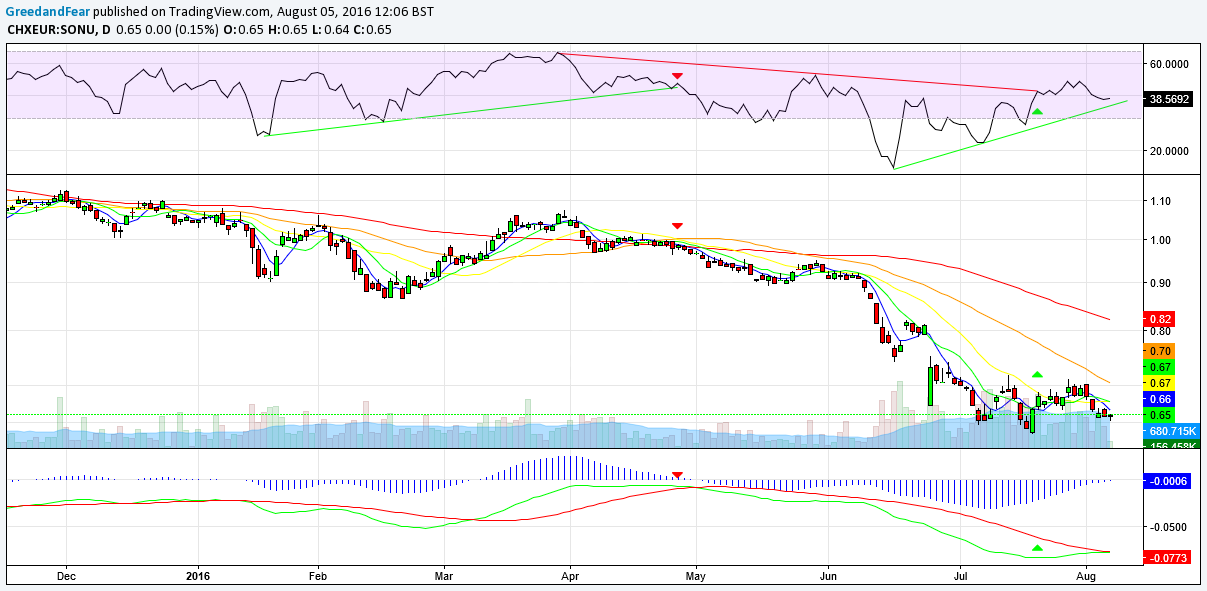Eu vejo a acao bem suportada nos 0,60 e a ensaiar um breakout a partir dos €0,70, ate porque a MACD esta a apontar para norte e a leitura do RSI esta nos 40 (longe de overbought), apesar da recuperacao que fez nas 2 ultimas semanas. Vejo tambem as primeiras medias moveis (de curta duracao) com golden crosses.