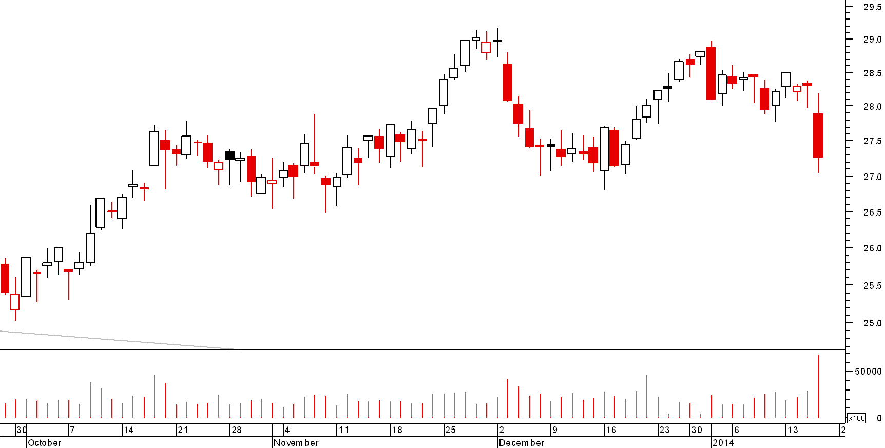 desde finais de outubro que o carrefour tem vindo a oscilar sobre uma zona que anda pelos 26.9 euros, sensivelmente; curiosamente o último máximo foi atingido no dia da publicação anterior