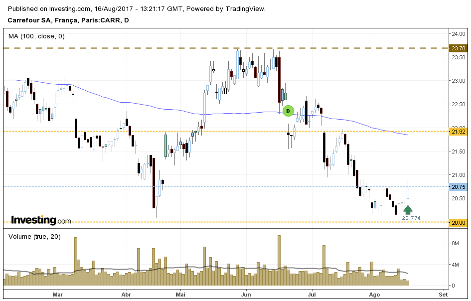 Eu por acaso dos 100% do capital que tinha para investir neste sector escolhi o Carrefour, porque já estava a espera de uma queda!Muito investimento, margens reduzidas, pelas minhas contas (AF) pensei de ir até ao 15€.