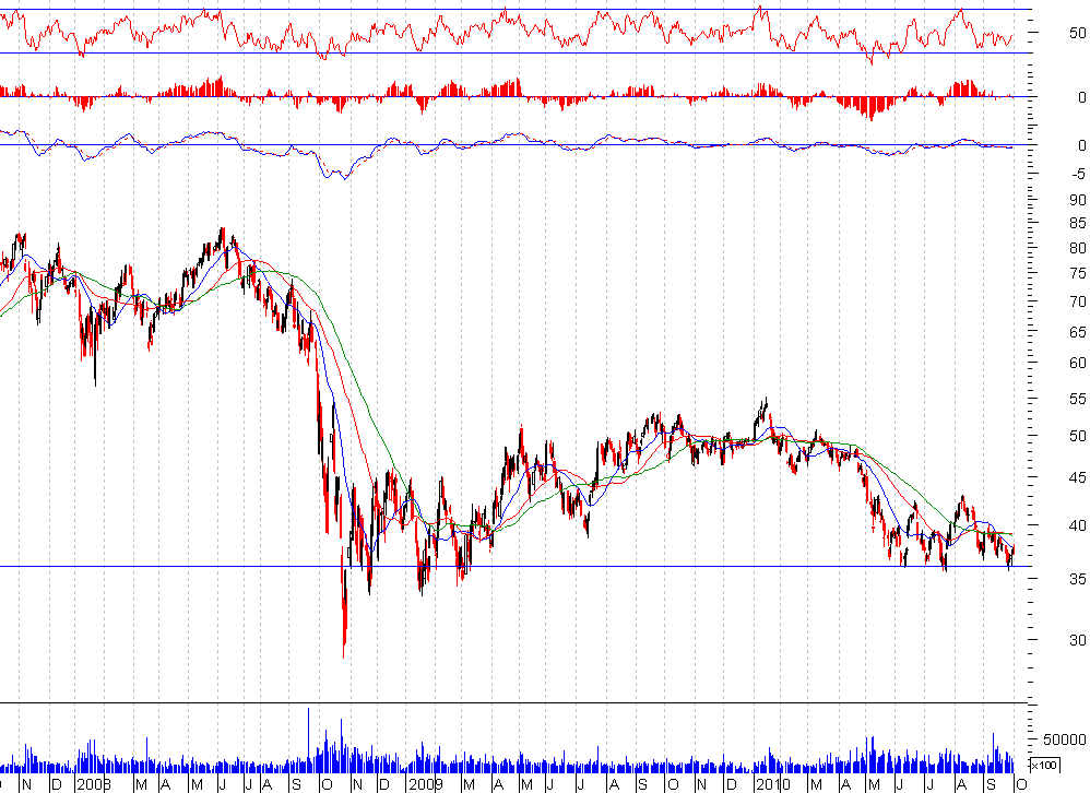 rsacramento, o suporte que indicaste no teu gráfico é bastante válido numa perspectiva temporal de longo prazo, mas o primeiro sinal de alerta já foi disparado aquando da quebra em baixa dos 34,xx / 35,xx.