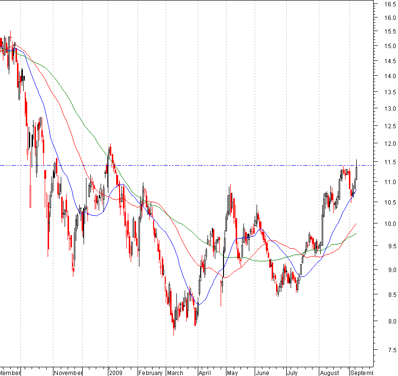 Entretanto, o volume continua muito fraco, pelo que parece-me que a cotação enfrentará um duro teste à volta dos € 11,30. O objectivo para já consiste na quebra em alta desta zona de resistência e, na medida do possível, no aumento do volume.