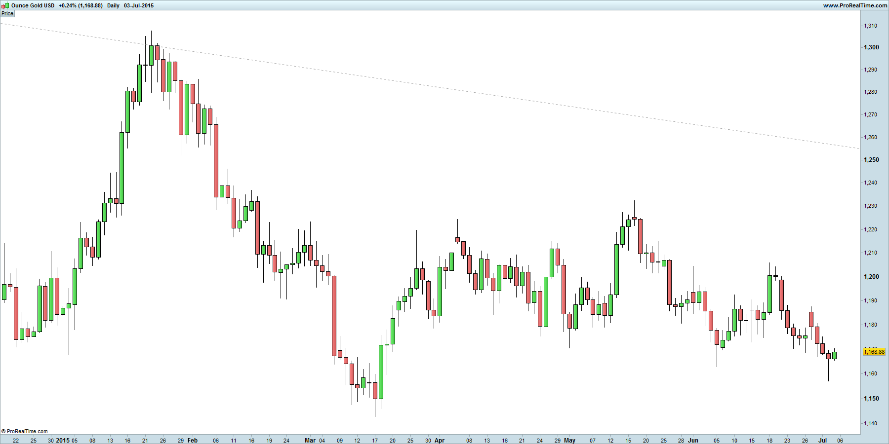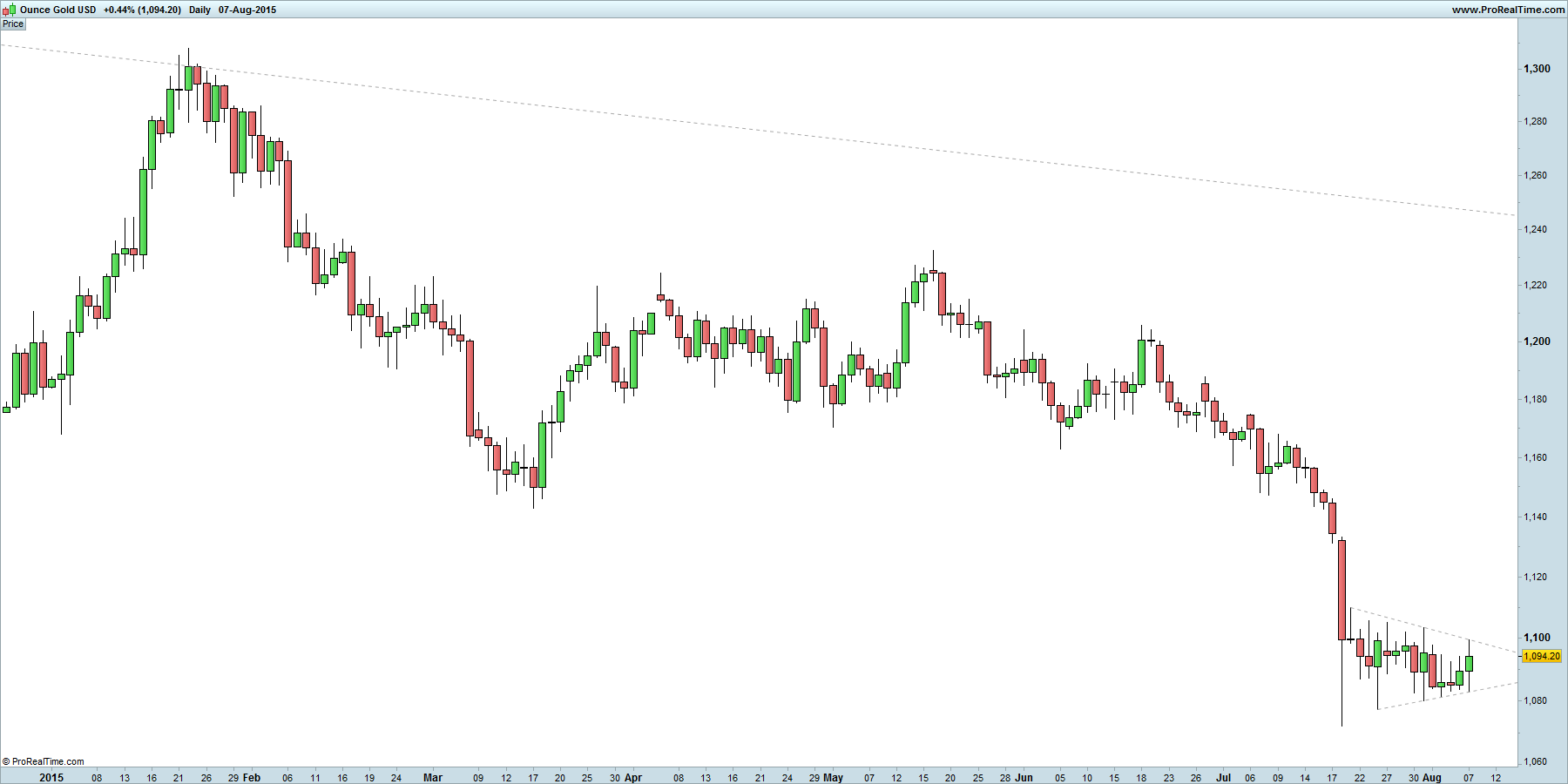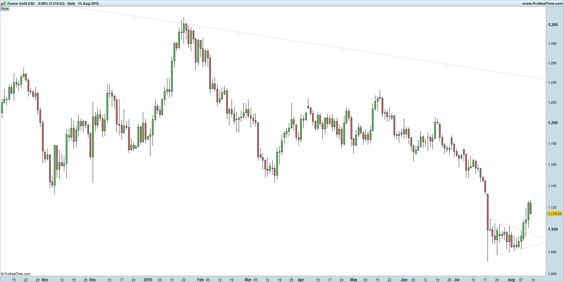 depois de ter feito um lower low, o ouro, e até ver, não foi além de um lower high