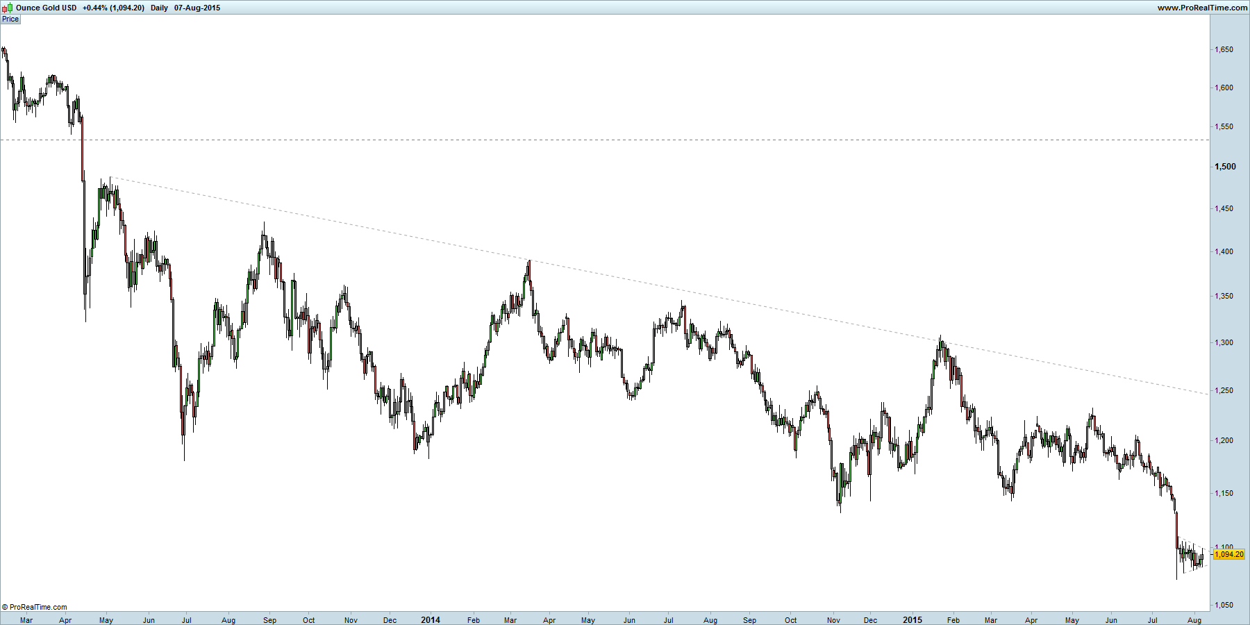 nada de novo no ouro: tendência descendente em todos os horizontes temporais