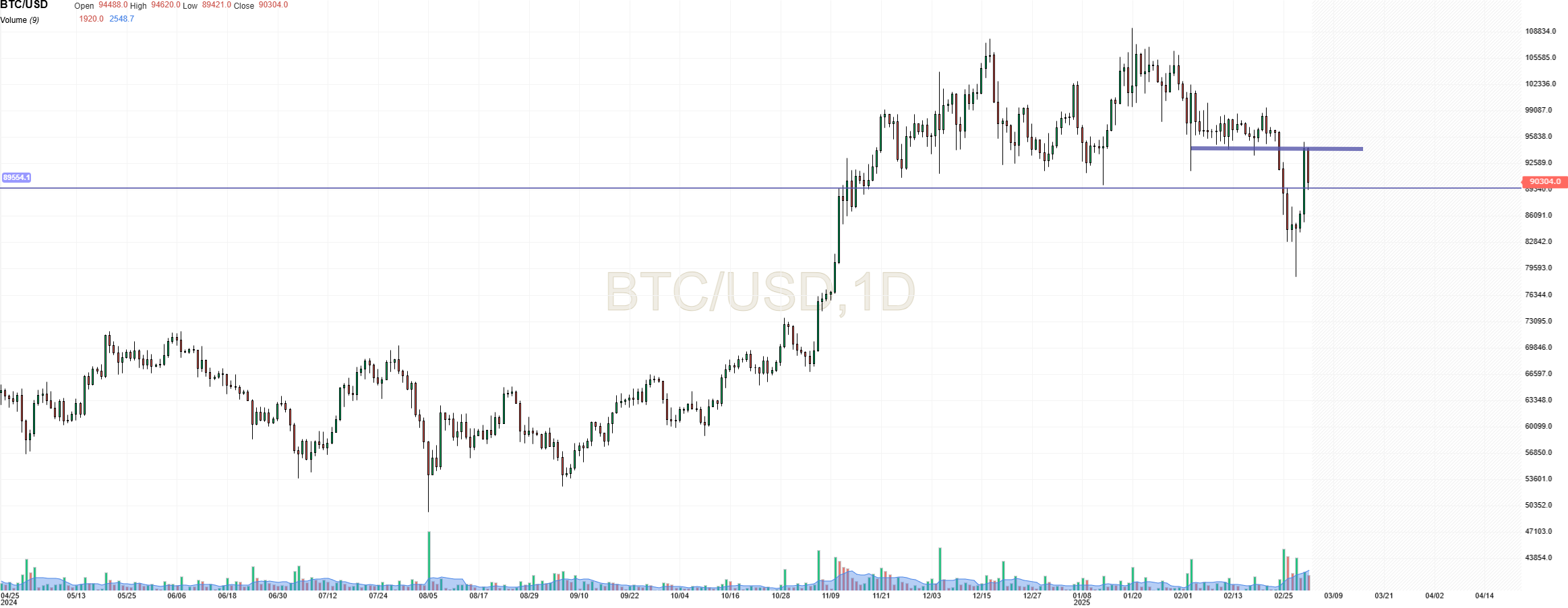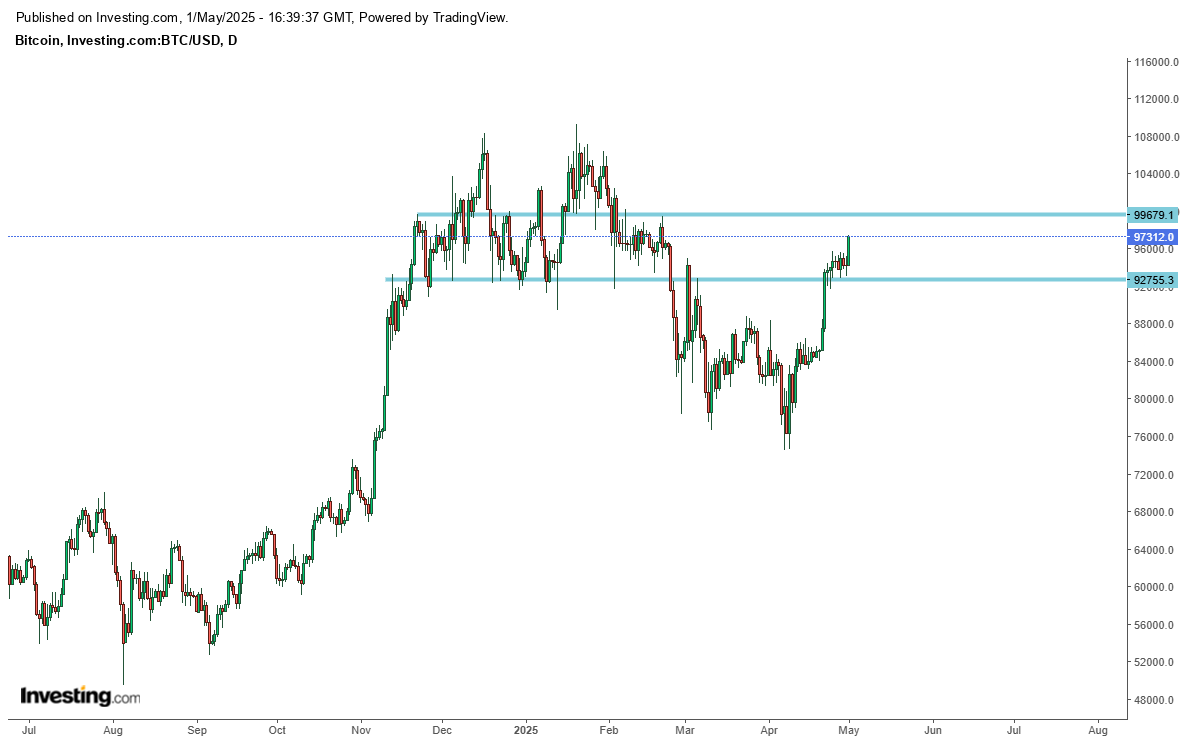Estão a recuperar em força e tudo aponta que esta semana vai para os touros mas a zona a ter em conta é ali em torno aos 94k.