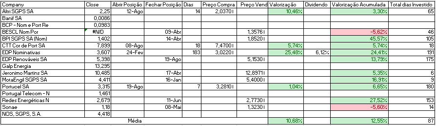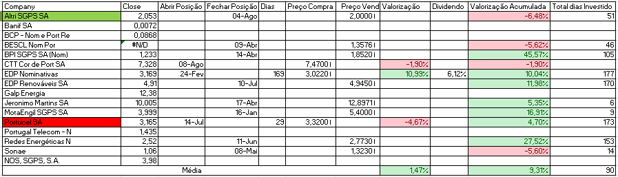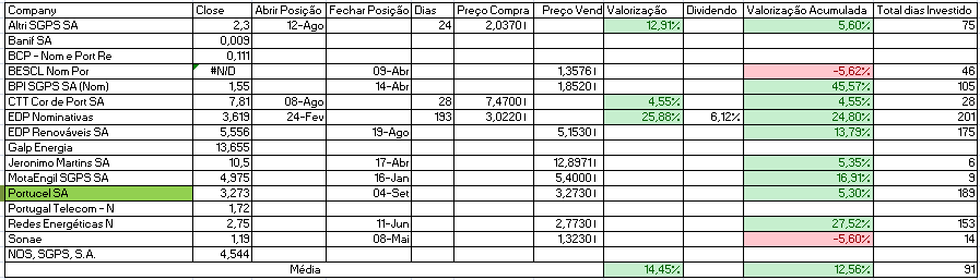 Sexta-feira não consegui comprar a Portucel pois encontrava-me em viagem, vindo do Sul de Portugal. As férias acabaram e amanha toca voltar ao trabalho.