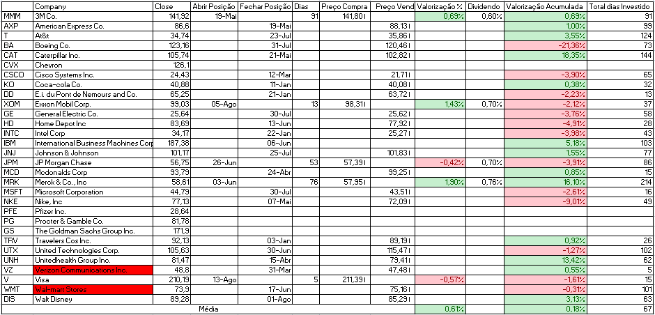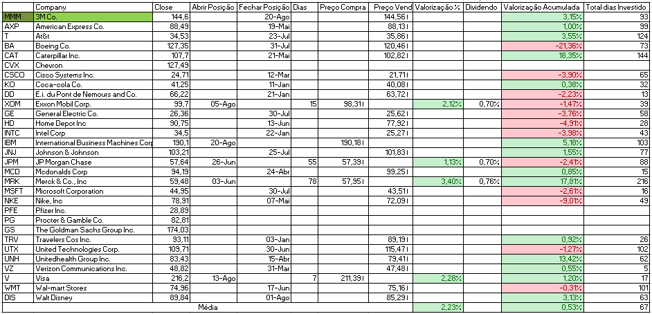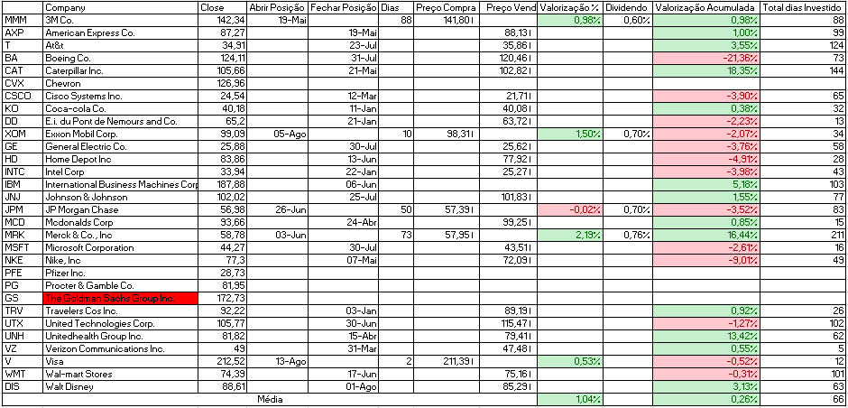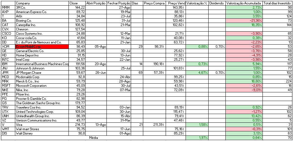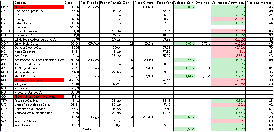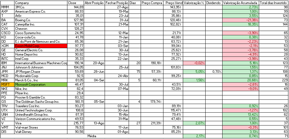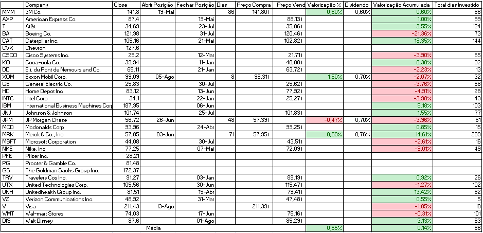 Antes de mais uma ressalva, pois verifiquei que não coloquei no mapa a compra da 3M conforme indicação dada no dia 21 de Agosto, mas infelizmente o impacto é praticamente zero, pois neste momento verifico um ganho de apenas 0,04%
