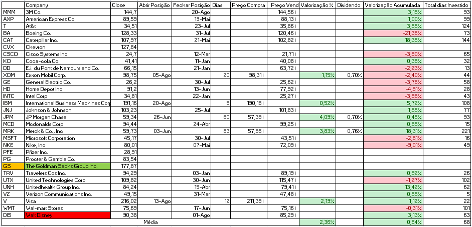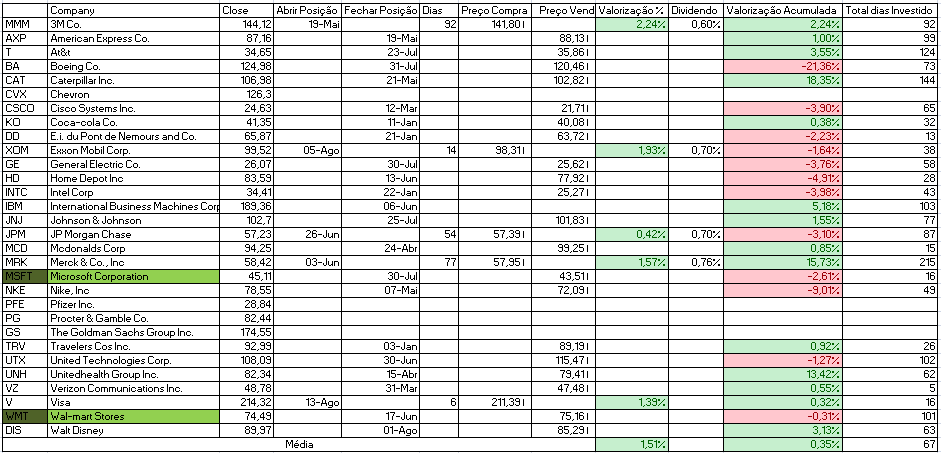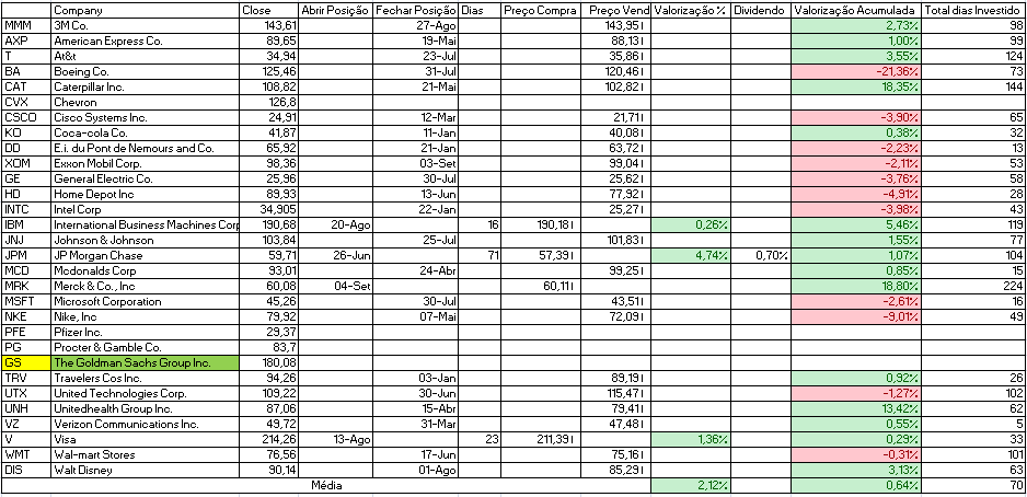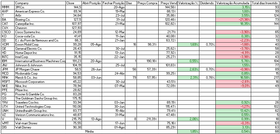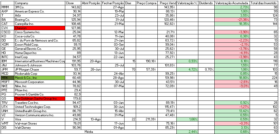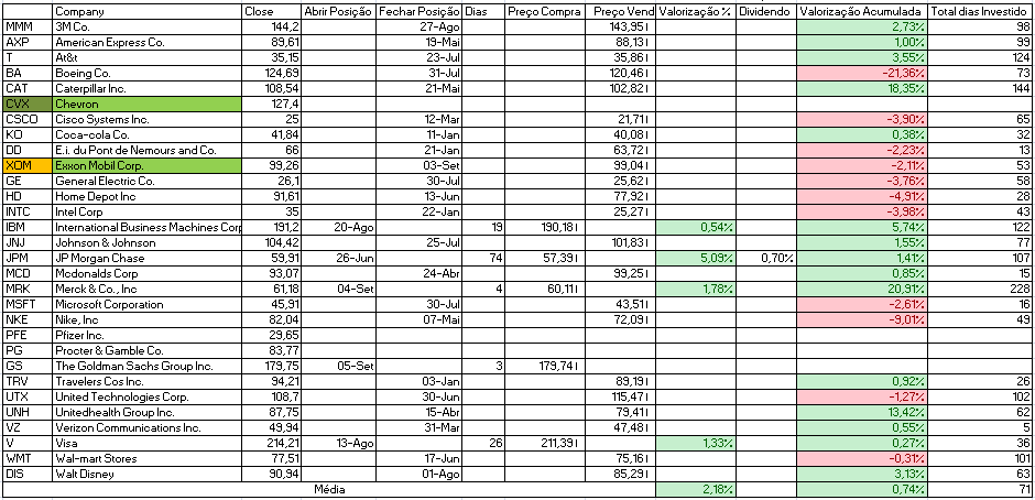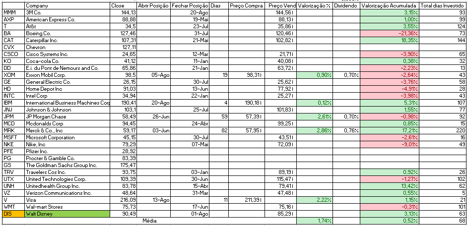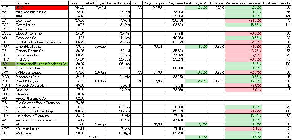 Antes de mais uma ressalva, pois verifiquei que não coloquei no mapa a compra da 3M conforme indicação dada no dia 21 de Agosto, mas infelizmente o impacto é praticamente zero, pois neste momento verifico um ganho de apenas 0,04%