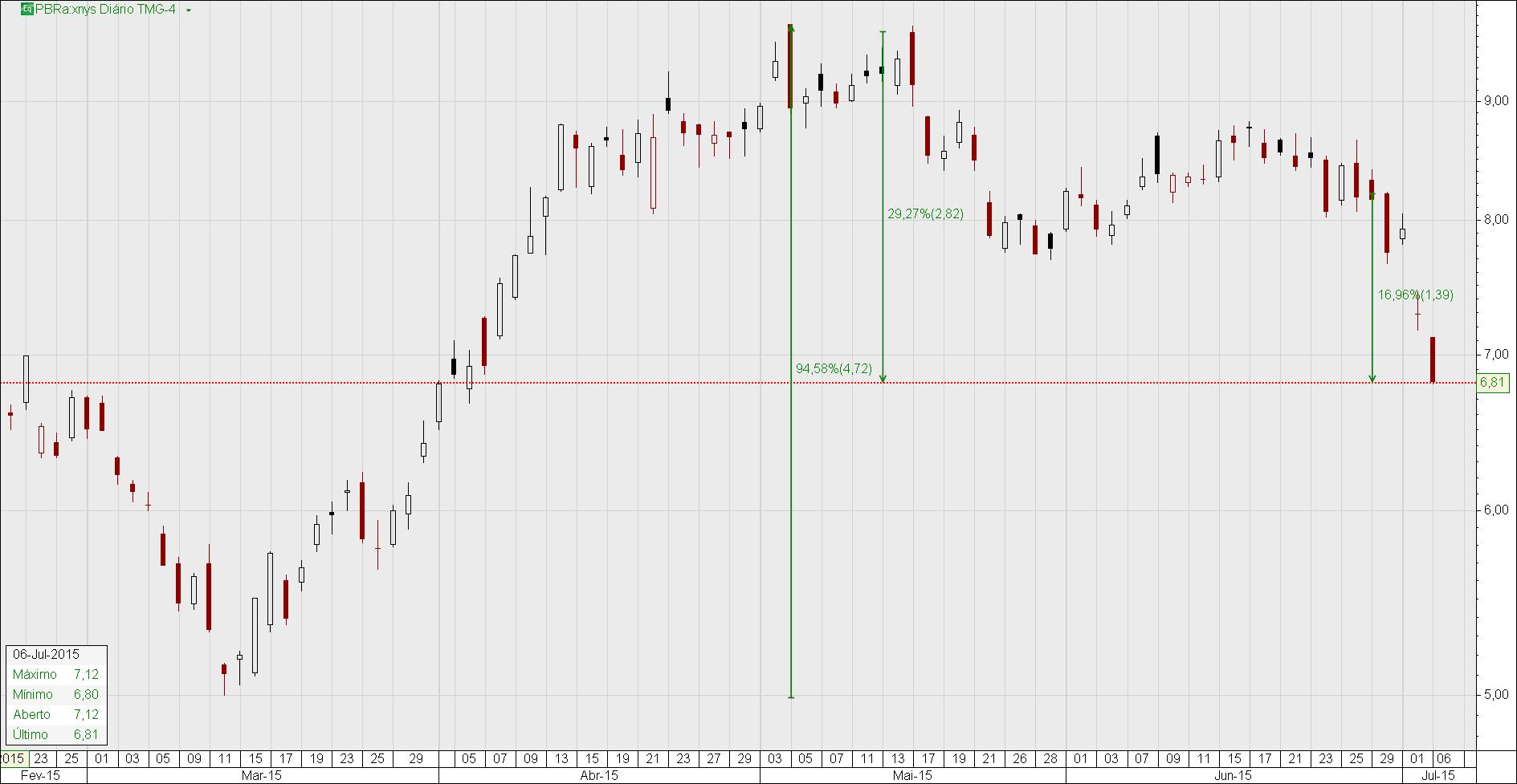 Como em todo lado mais uma vez o Brasil também a derreter e pobrezinha da petrinha PBR já derreteu-se 16% em dois dias, está tudo ficando mesmo a jeito e espero que o assunto Grego se resolva rapidamente se é que se é que seja o mais premente dos assuntos que está a forçar esse modo bearish do mercado porque começo a questionar-me que além de Gregos o mercado Chines continua a derreter-se e o FED Chines apesar dos esforços não estão conseguindo conter as quebras, são uma serie de eventos conjugados que me parece que apenas seja o inicio de uma tempestade enorme que se está a formar.