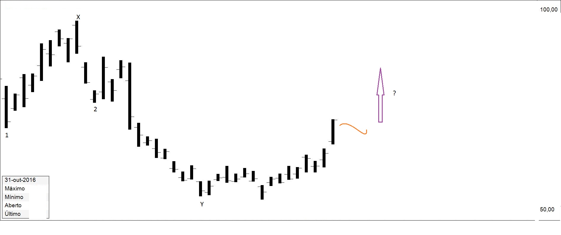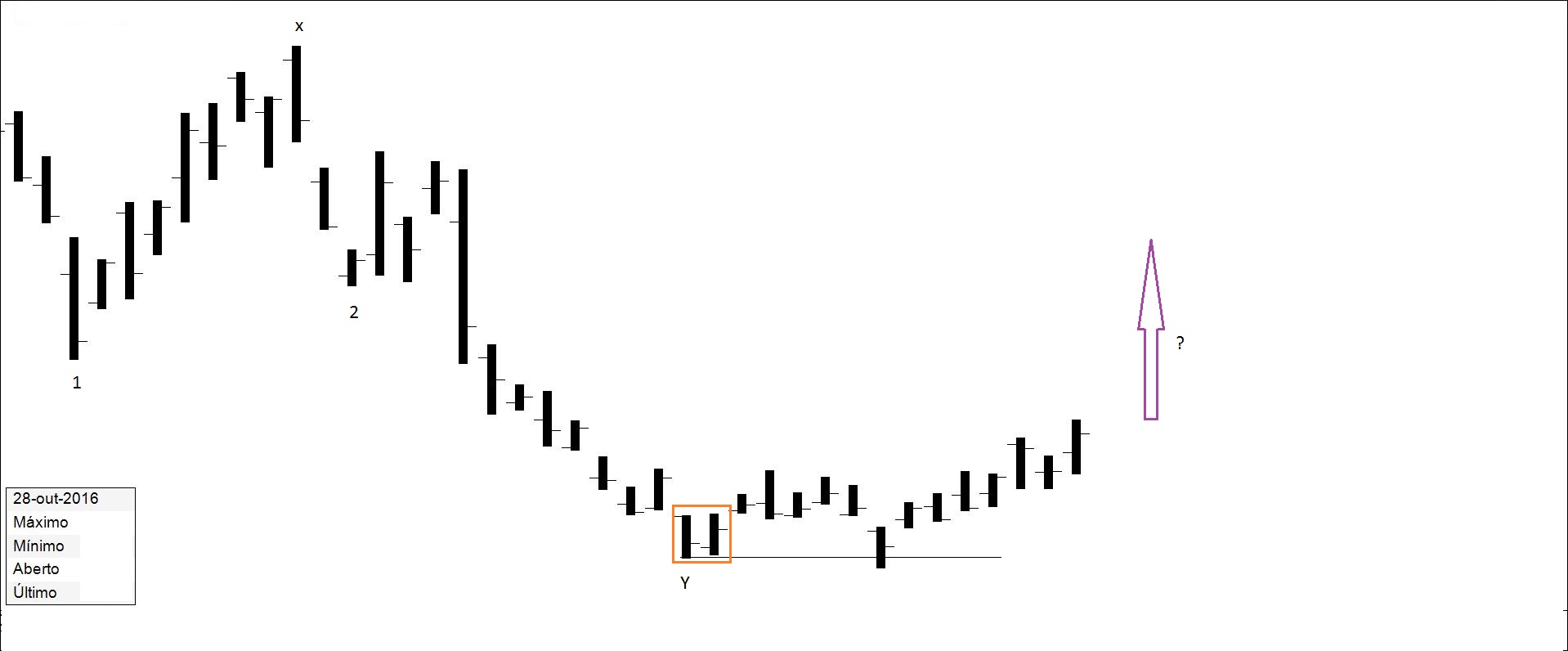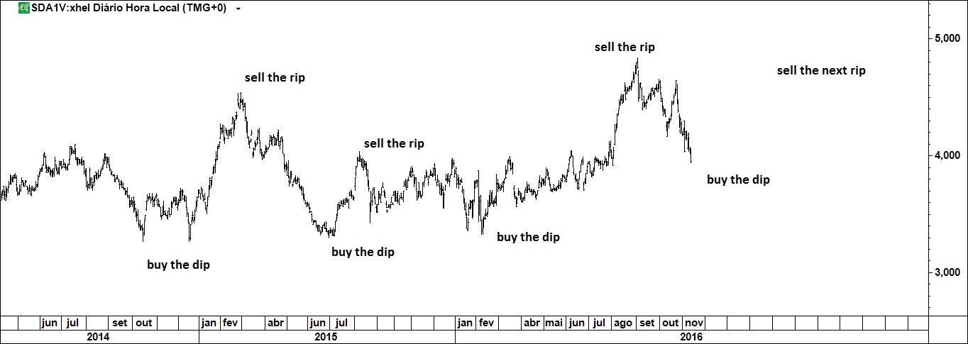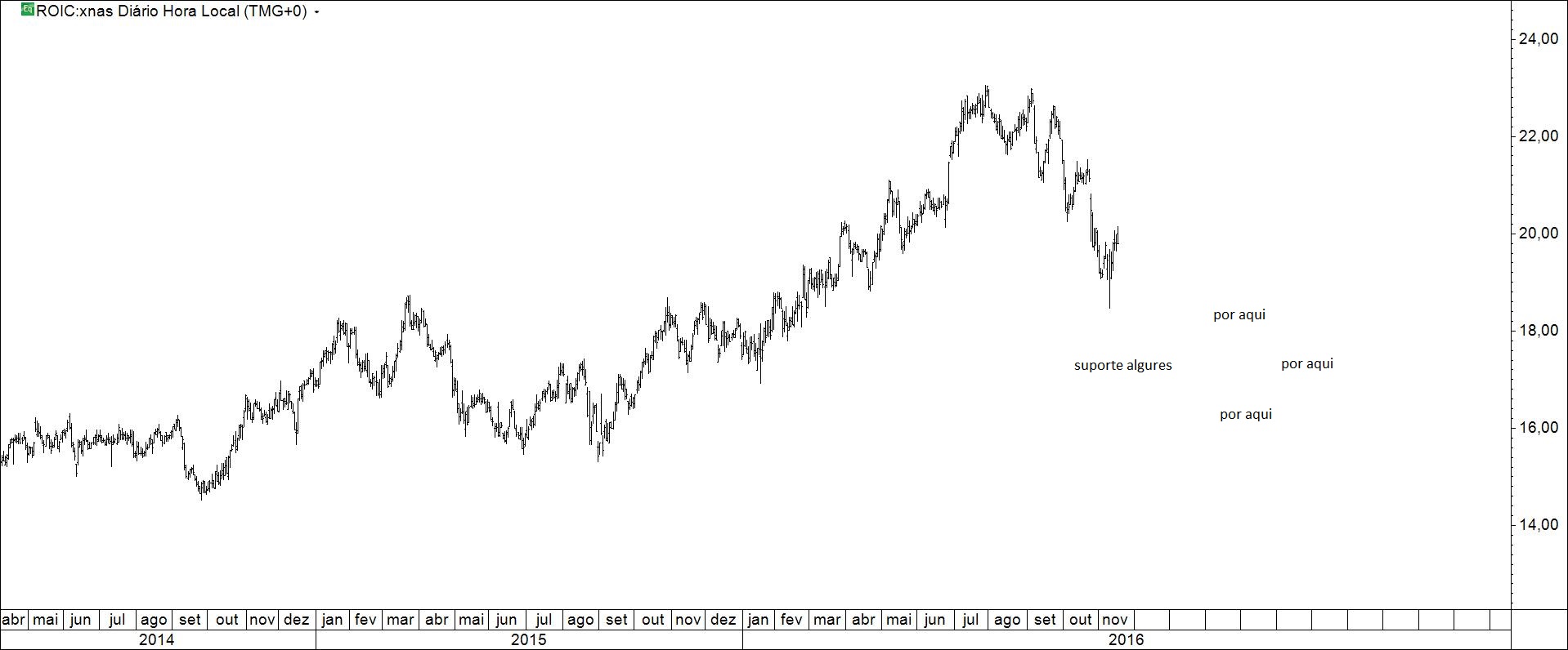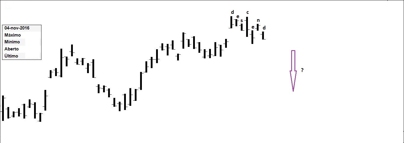 Presente: procurando suporte na resistência. Há quem defenda compras nos suportes.