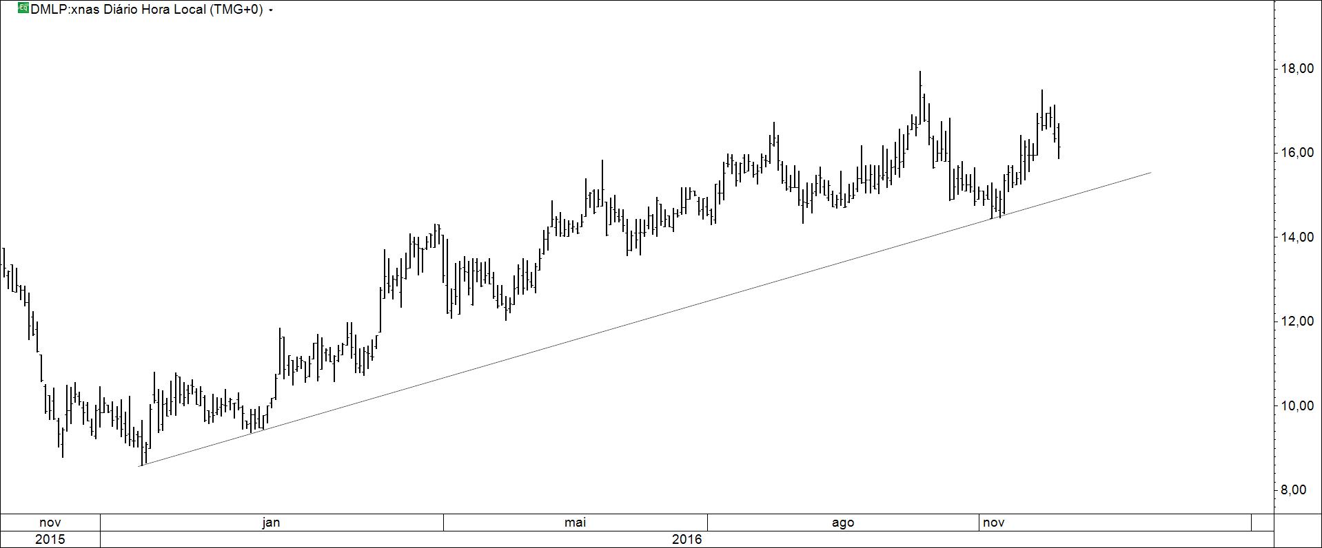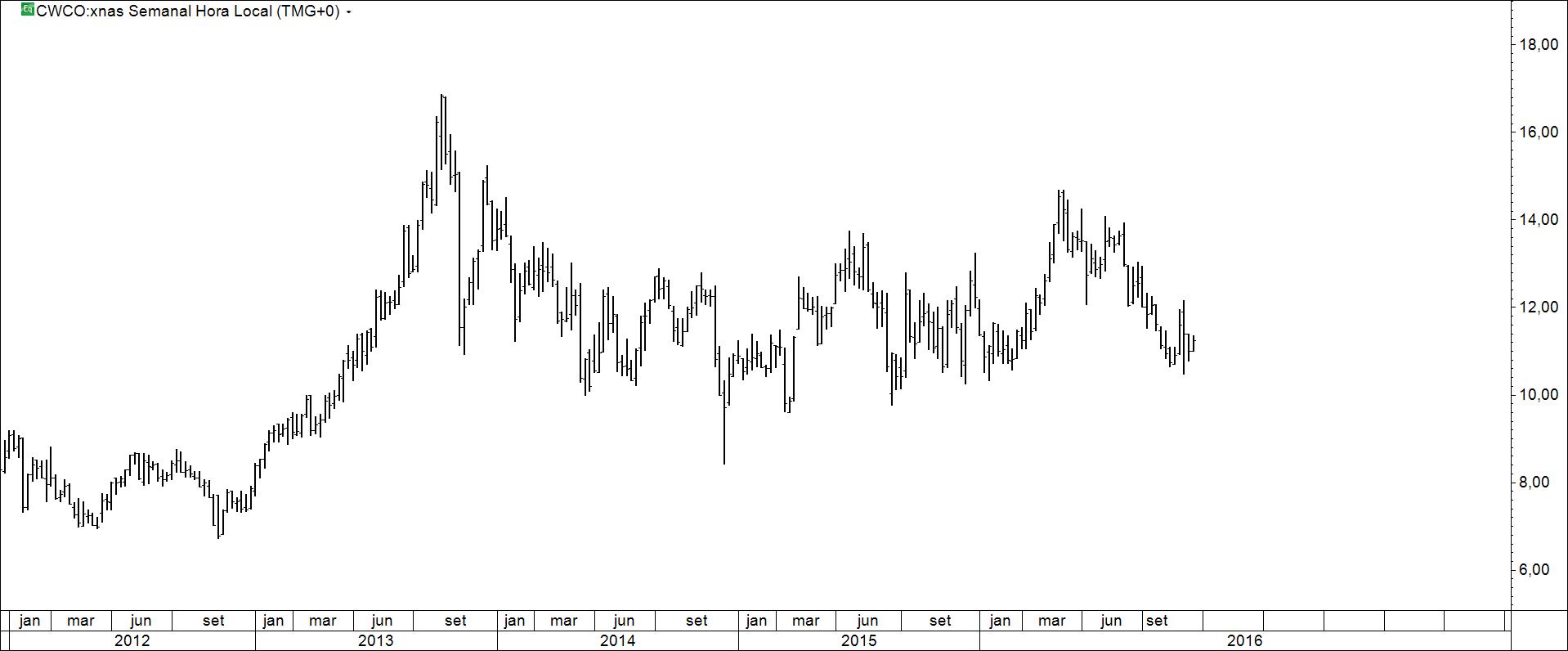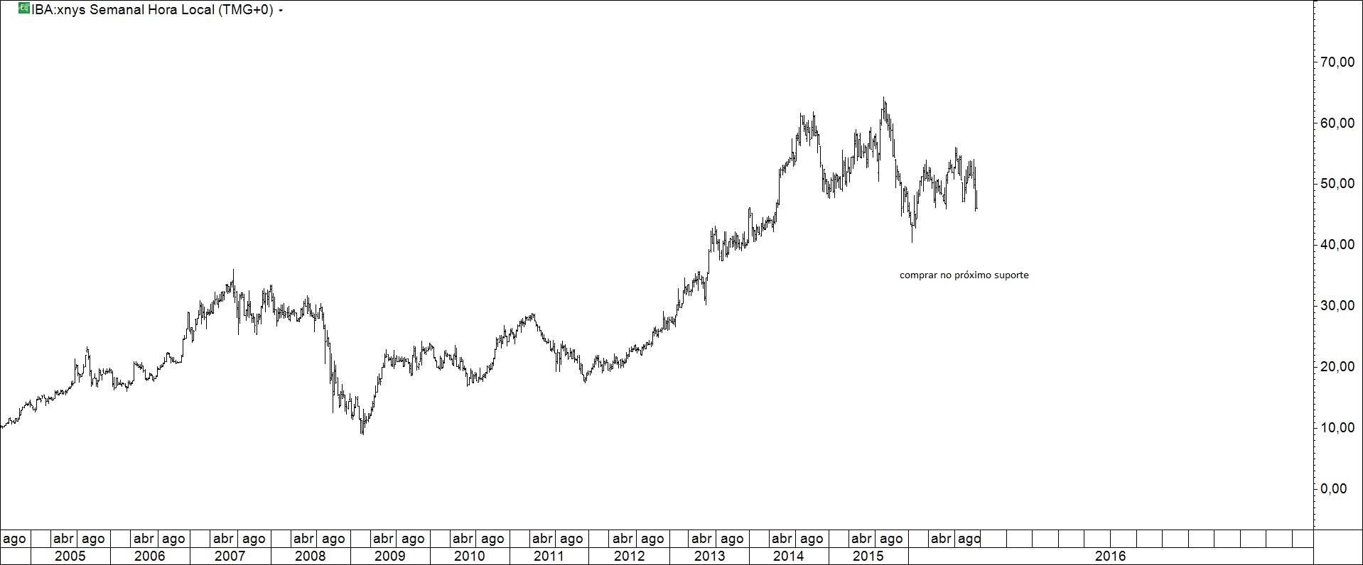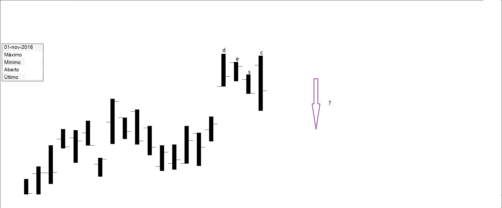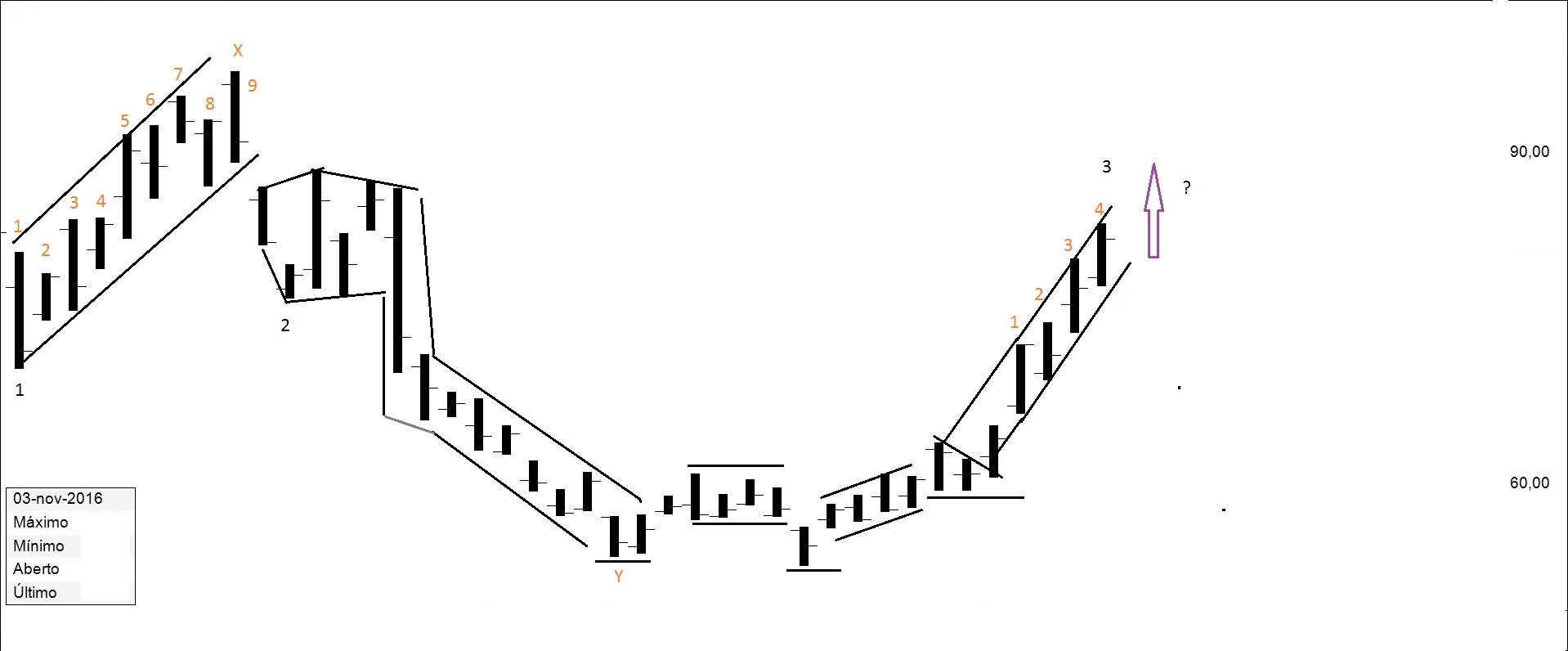 Presente: procurando suporte na resistência. Há quem defenda compras nos suportes.