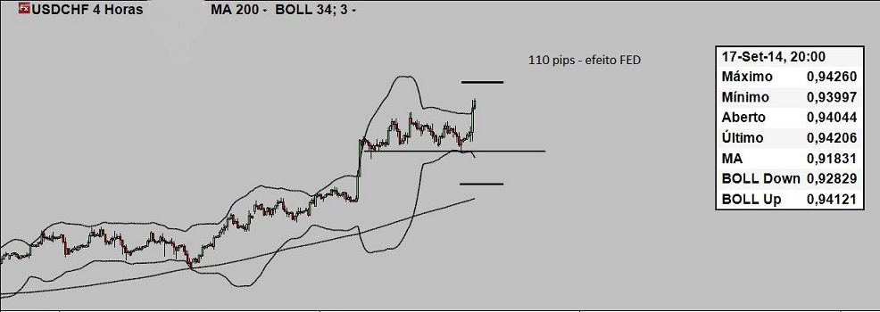 Activo: USDCHF, gráfico de 4 h, proveito de 110 pips, fecho manual da posição dado o efeito FED do movimento.
