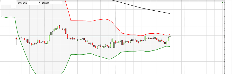 bb 34,3 e mm 200. A bb destina-se a tentar apanhar momentos de contração da volatilidade abaixo e acima da mm 200 e negociar de acordo com a tendência ou o regresso à mm, dependendo da distância em dias e pontos (cálculo estatístico) do preço à mesma (para este efeito 1 euro/1 usd são 100 pontos). No original R Booker também chegou a usar a mm 800 dias conjugada com a mme 65.