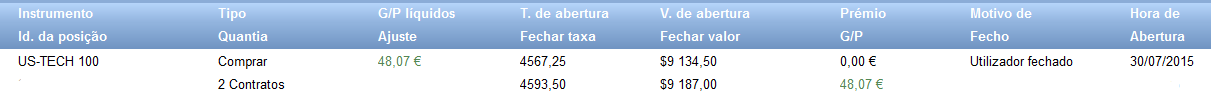 A posição aberta no inicio do mercado ontem à noite, continua activa.