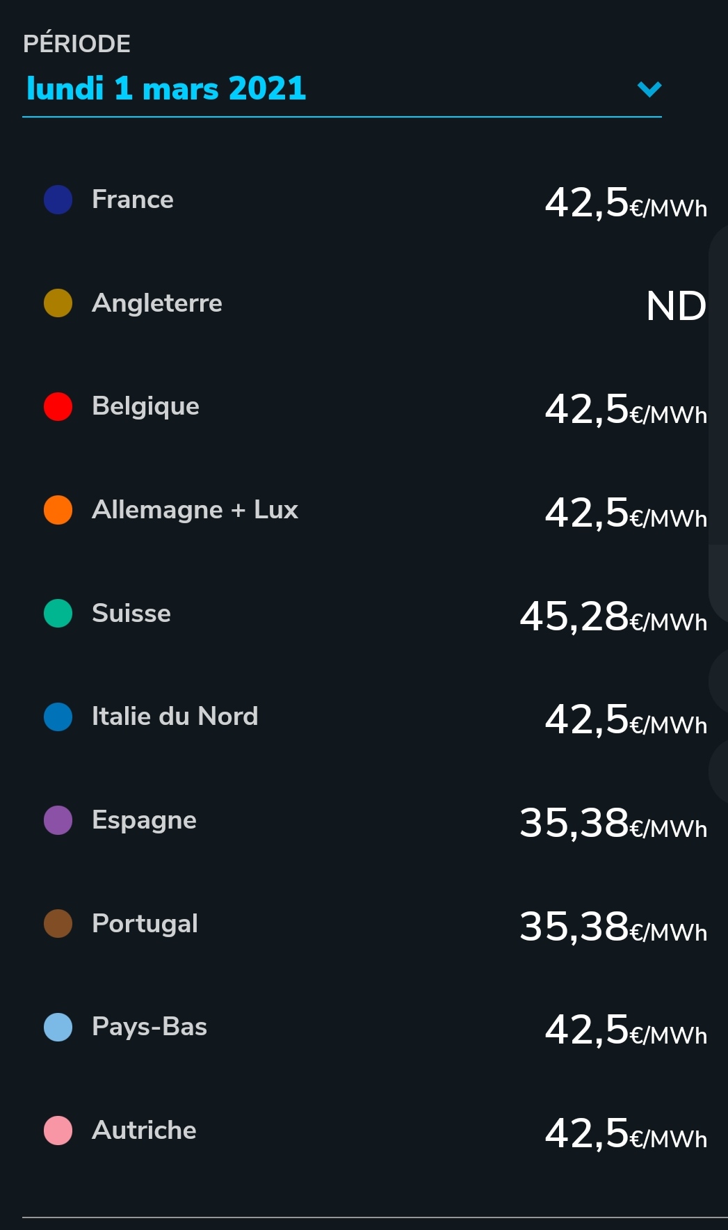 São os preços do Mercado Grossista em França, equivalentes aos preços do nosso MIBEL.
