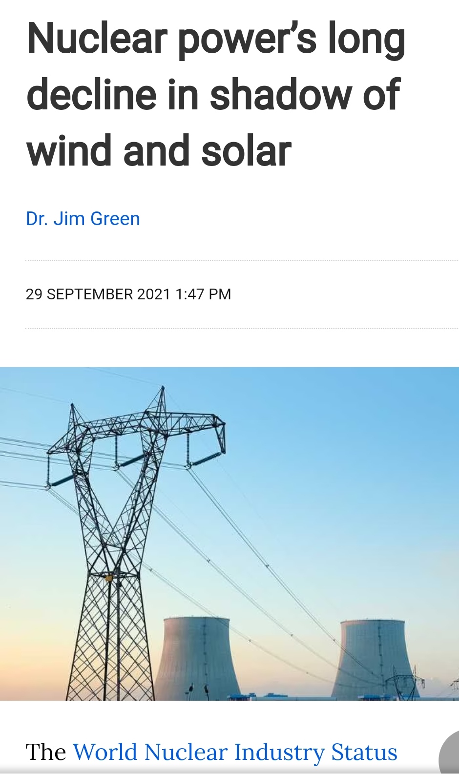 Nuclear power’s long decline in shadow of wind and solar