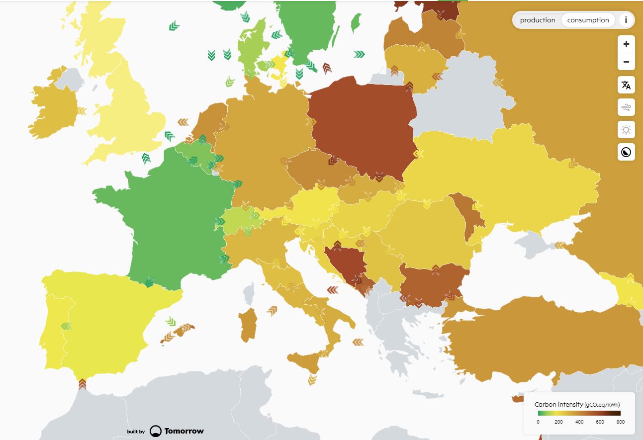 O site partilhado pelo HRamos_3 e realmente muito claro na perspectiva de quem e verde. A França 10x menos carbon intensity que Portugal.