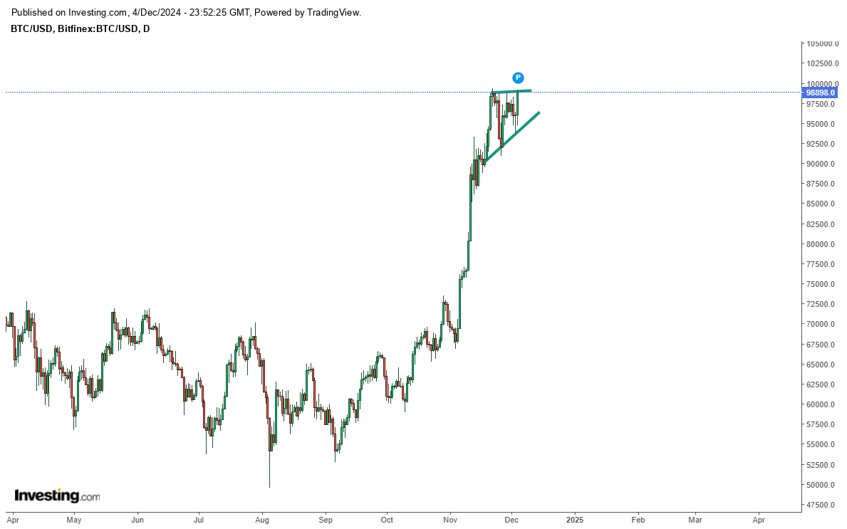 Claro que o Bitcoin haveria de chegar aos 100K. Depois disto nada impede uma euforia ainda maior, tipo bolha ou um daqueles "estouros" que ciclicamente ocorrem nas criptos. Melhor casino é impossível, nesta fase.
