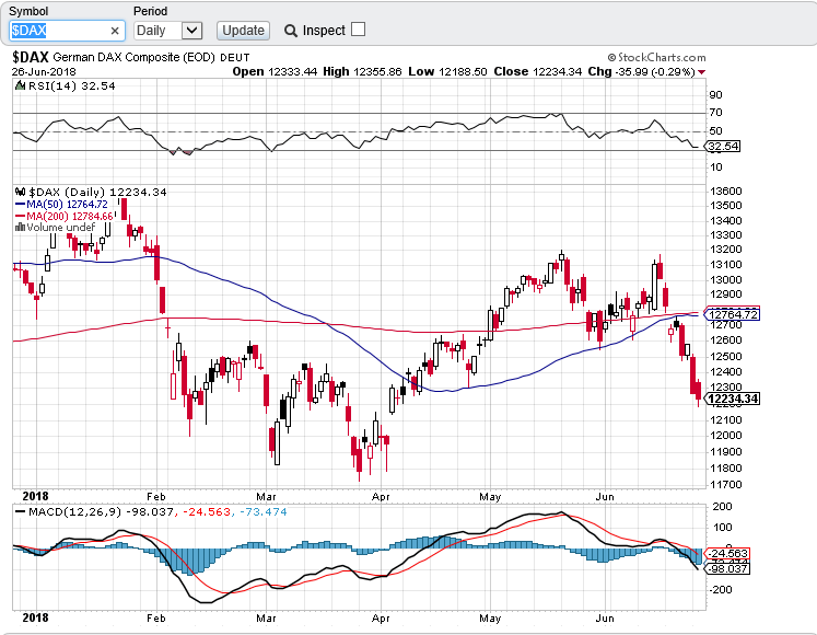 O DAX hoje cai 1.6% abaixo da MM200 e MM50
